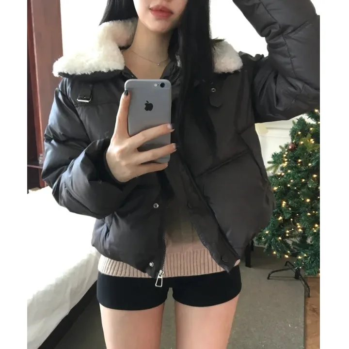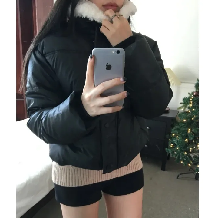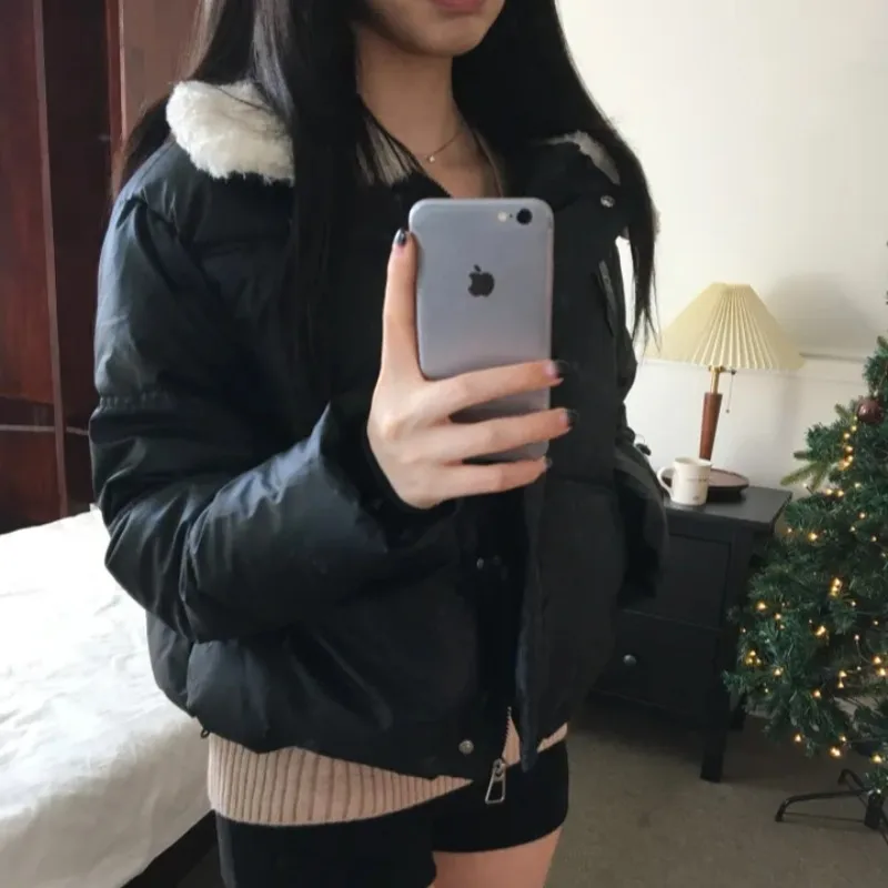 女性の冬のコットンジャケットシックな日常多用途ファッショナブルな毛皮の襟半袖ロングジッパーウォームトップ厚みのある長袖 - TopDealBox