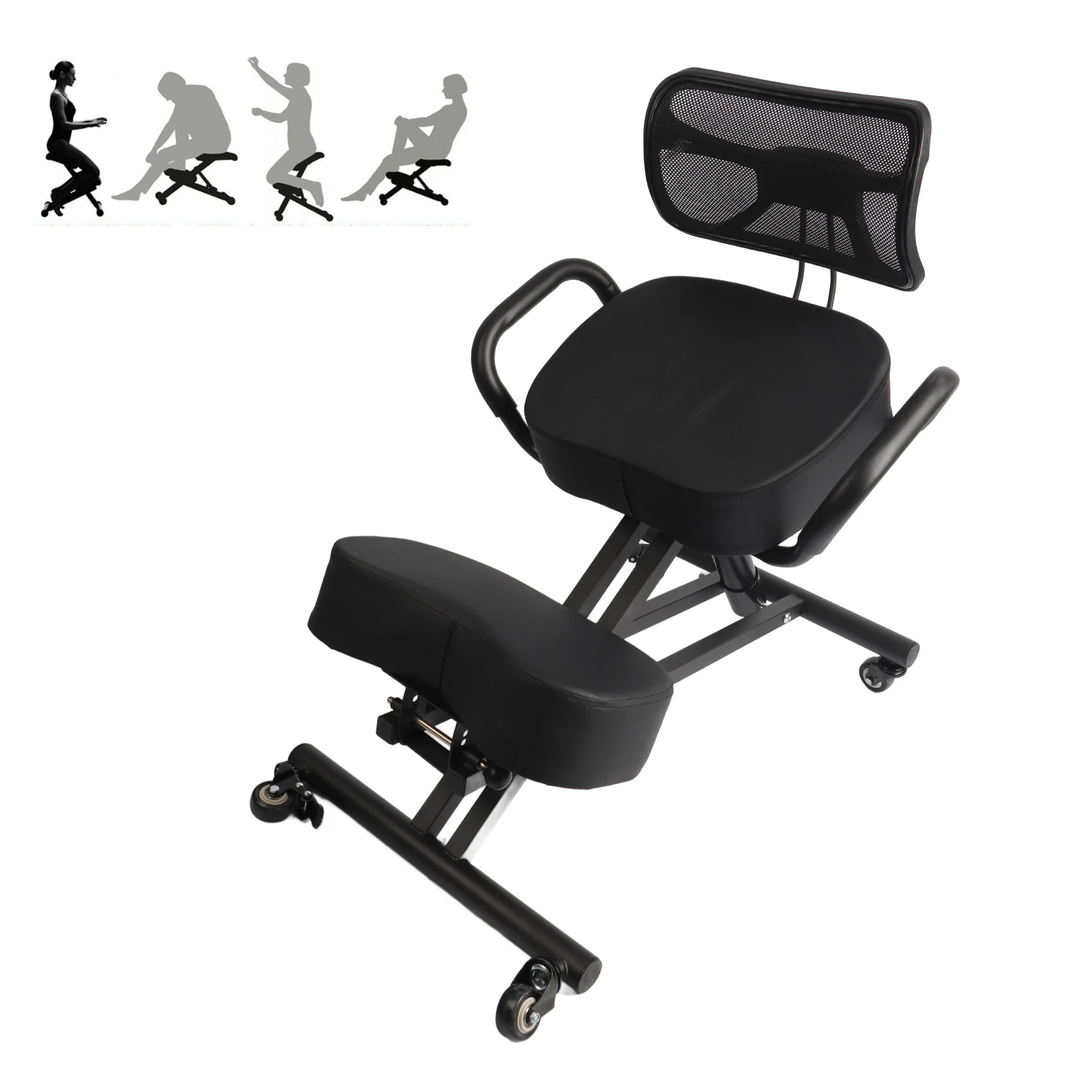 高さ調節可能な人間工学に基づいた通気性のある背もたれ付きひざまずく椅子、レザー クッション付きひざまずく椅子、整形外科用スツール