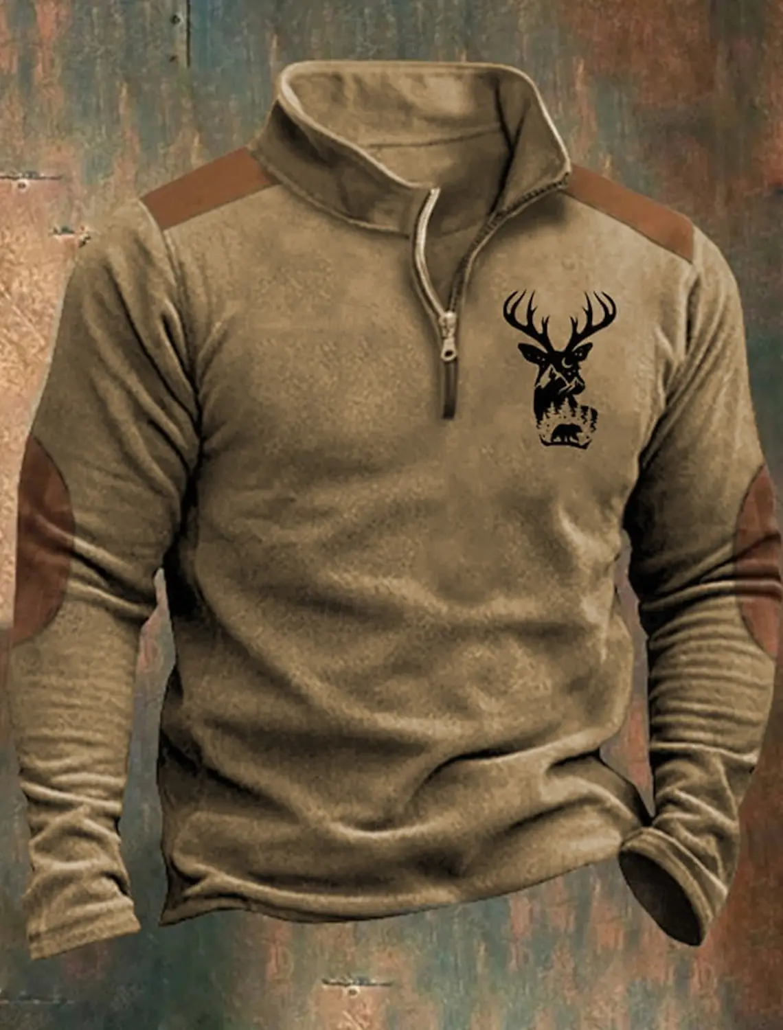 メンズ ジップ スウェットシャツ トナカイ プリント クリスマス デイリー ホリデー ストリート カジュアル 秋冬 衣類 アパレル パーカー スウェット - TopDealBox