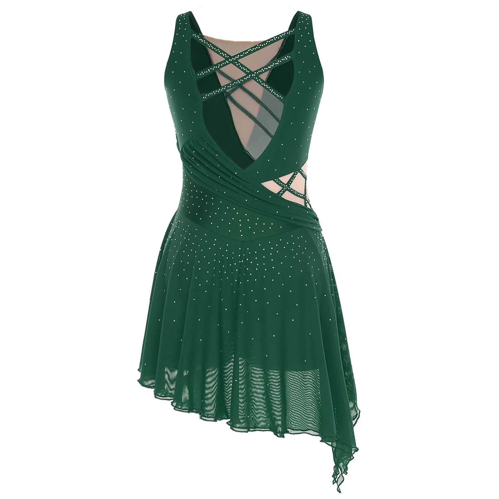 レディース体操芸術フィギュアスケートバレエ叙情的ダンスレオタードドレスラインストーン内蔵股ボタンブリーフドレス