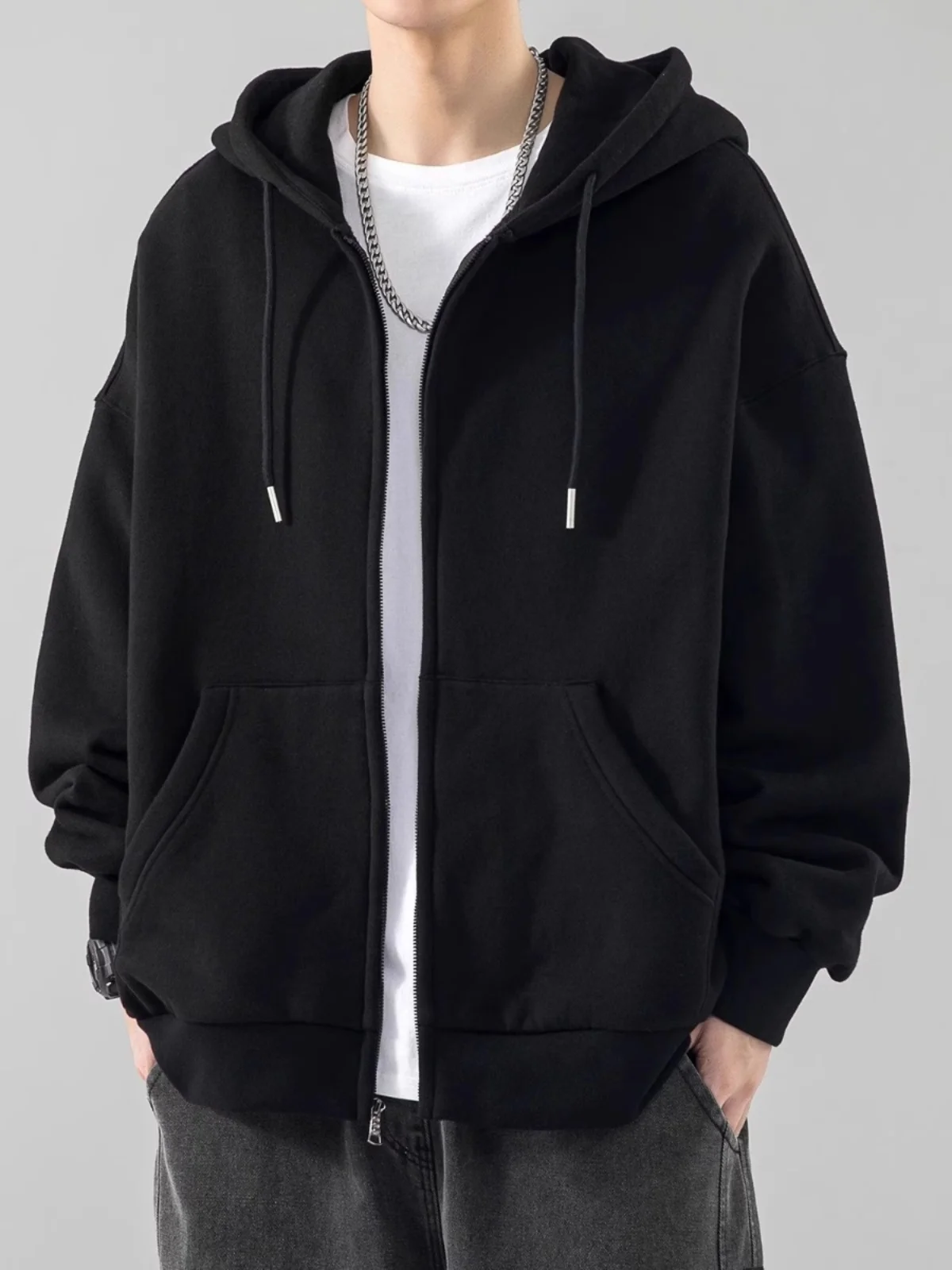 ヘビーウェイトフード付きスウェットシャツメンズ春秋冬新作フリース裏地付きトレンディブランドカジュアルアウターウェア若者向け - TopDealBox