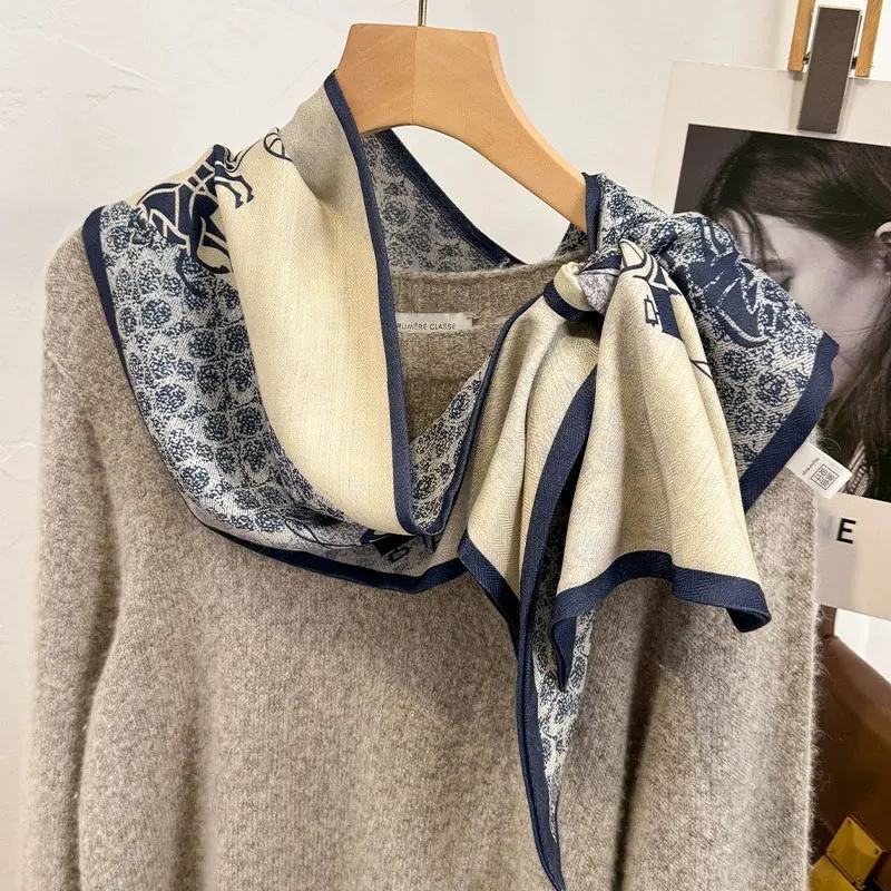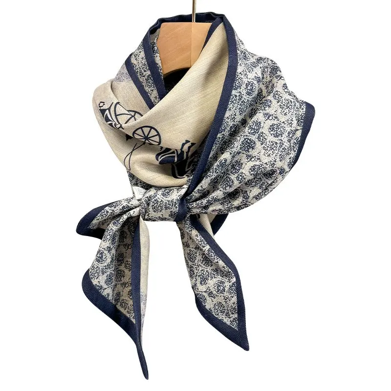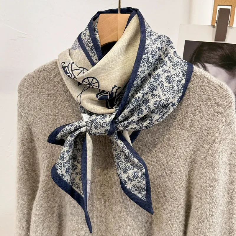 ファッショナブルな春秋の馬車トーテムプリントシルクスカーフ女性の広角ネクタイマッチングスーツコートスカーフ韓国スタイル - TopDealBox