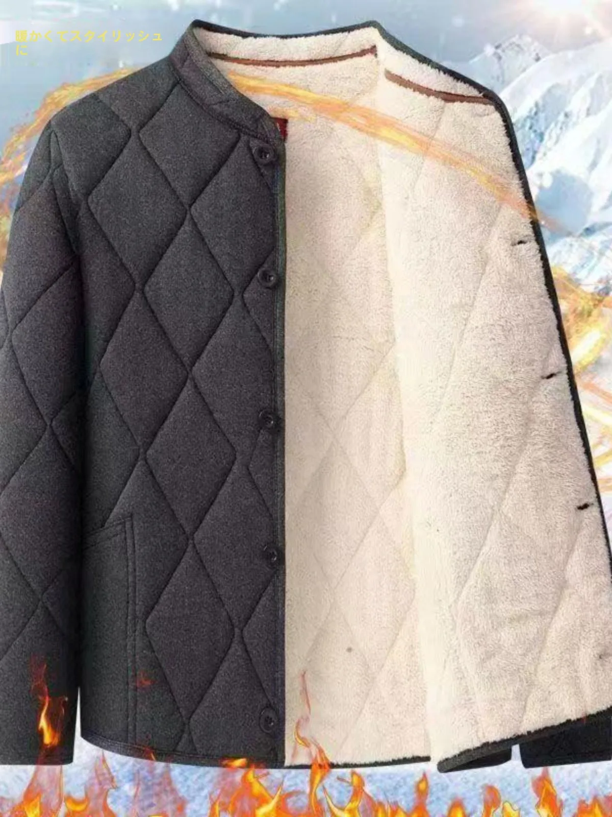 高齢男性用の厚手の冬用綿ジャケット、暖かさ、断熱性、フリース裏地、ファッショナブルな都会的なスタイル、長袖、スタンドカラー - TopDealBox