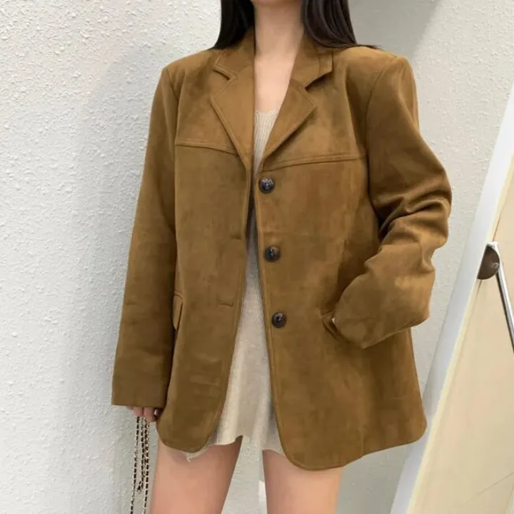 ♡Quick viewトップレイヤースエードスーツジャケット女性のための 2024 高級輸入子供スエード 100% レザーワンボタンバックカットコートリンダフクシア Ceket33215 JPYHot★★★★★5.0