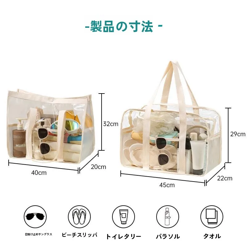 大容量透明ビーチバッグ旅行用防水収納ハンドバッグ、海辺での休暇用砂収納オーガナイザー - TopDealBox
