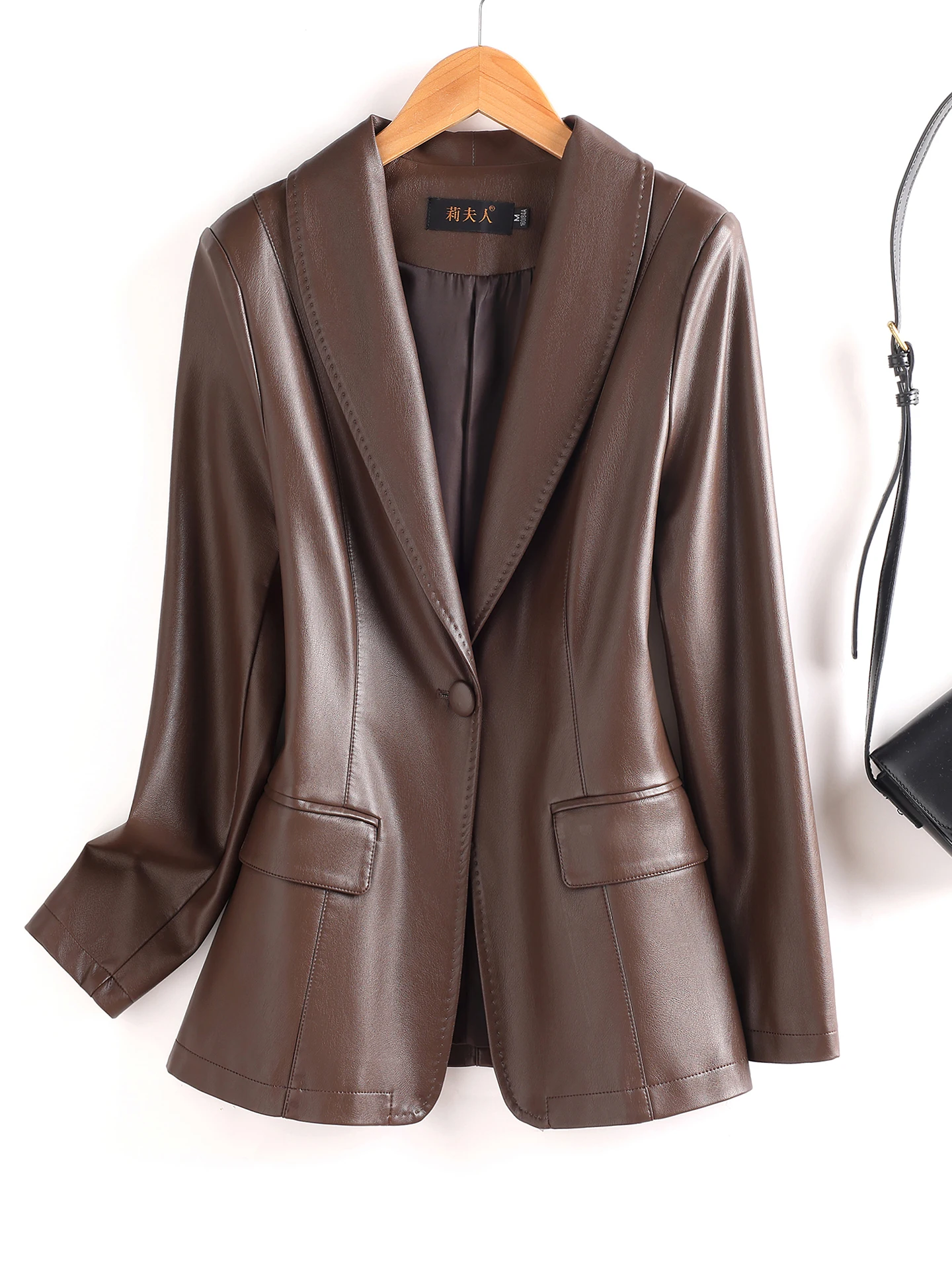 スリム効果のある本物の羊皮ショートジャケット、レディースファッション韓国風レザージャケット、通勤用ウィンドポケットデザイン - TopDealBox