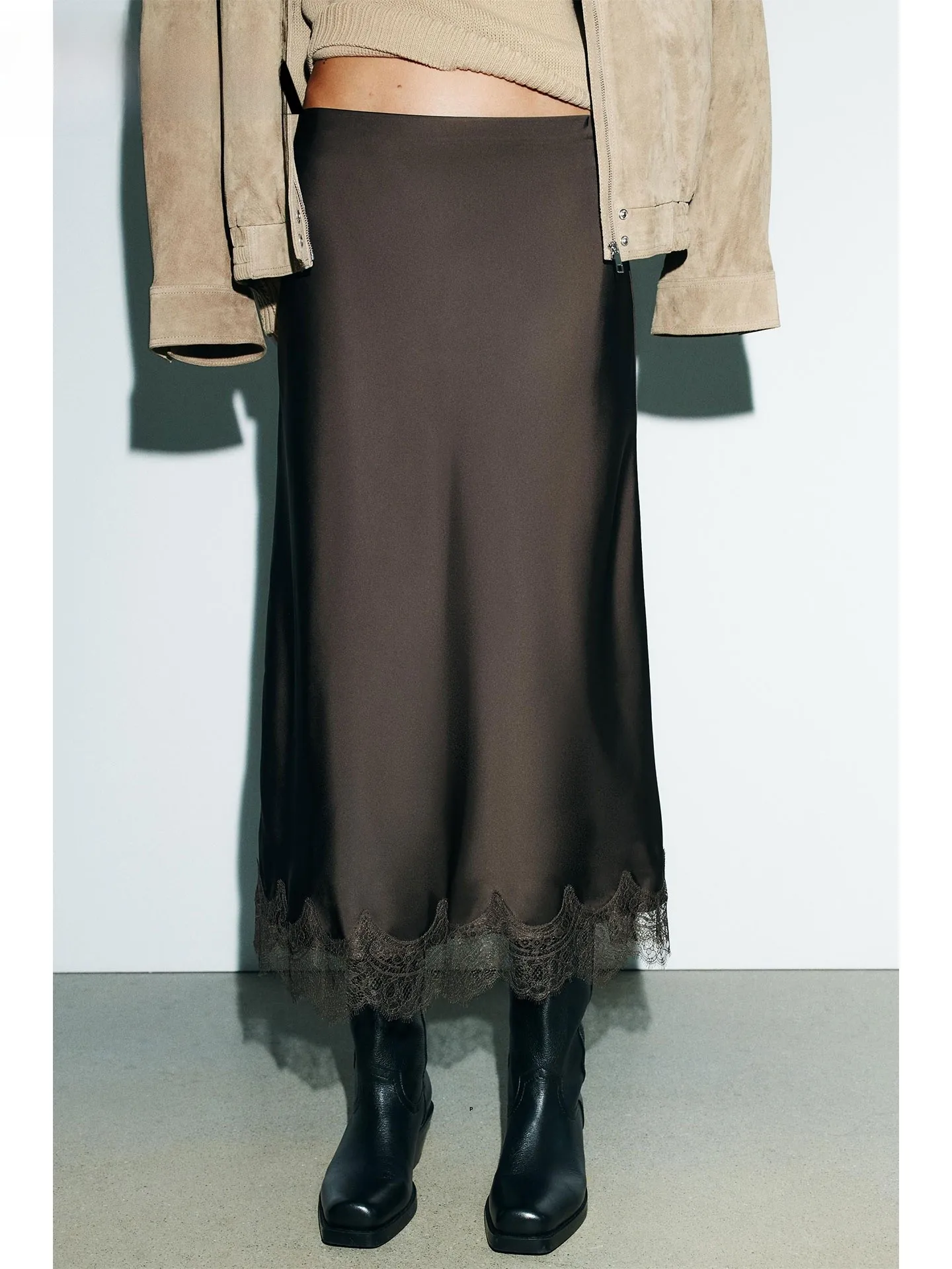♡Quick viewZAPRHA 2025秋新作 レーストリム シルクサテン風 ミディ丈 ホルタースカート スリム ハイウエスト カジュアル ストレートカット レディーススカート2169 JPYHot★★★★★★4.6