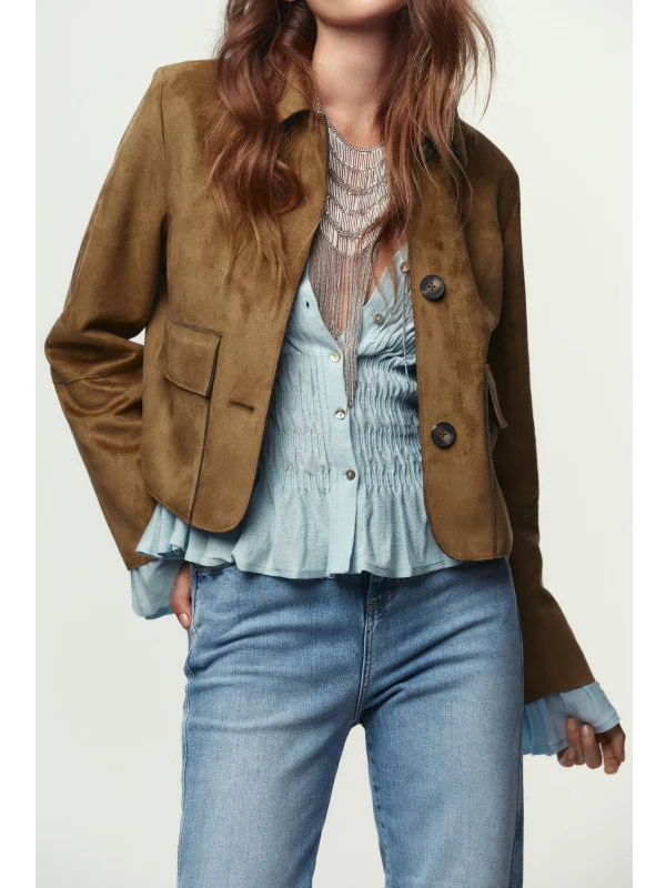 おしゃれなショート丈キルティングジャケット レディース 秋新作 フェイクファー レザー風 アウター おしゃれ 通勤スタイル - TopDealBox