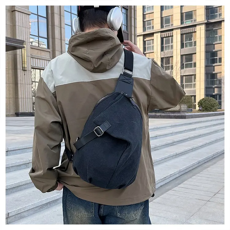 大容量スポーツキャンバスチェストバッグ男性用カジュアルクロスボディバッグトレンディなブランドファッショナブルな多用途レジャーメンズバッグ - TopDealBox