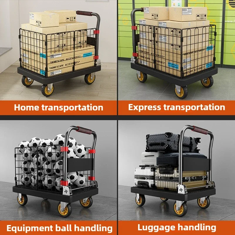 フェンスフラットベッドカート折りたたみ式静音トロリー家庭用プルトロリー運搬用四輪小型トレーラー小型プルトラック - TopDealBox