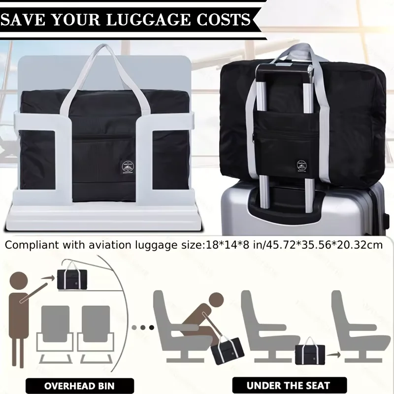 ポータブル折りたたみ式トラベルダッフルバッグ大容量スポーツジムバッグ、軽量機内持ち込み荷物ダッフルバッグコーチバッグトラベルバッグ - TopDealBox