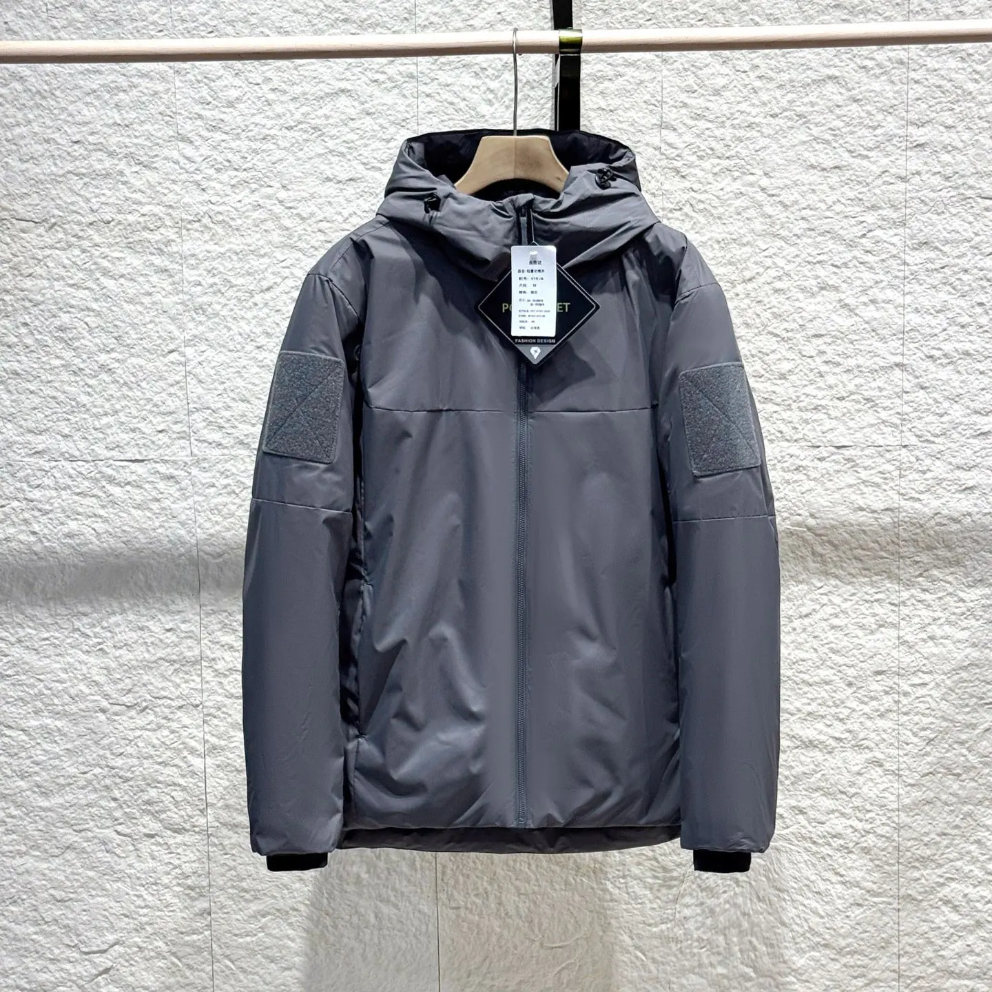メンズアウトドアスポーツフード付き軽量暖かいコットンジャケットユースファッションスタンダードフィット長袖ピュアカラーカジュアル秋冬コート - TopDealBox