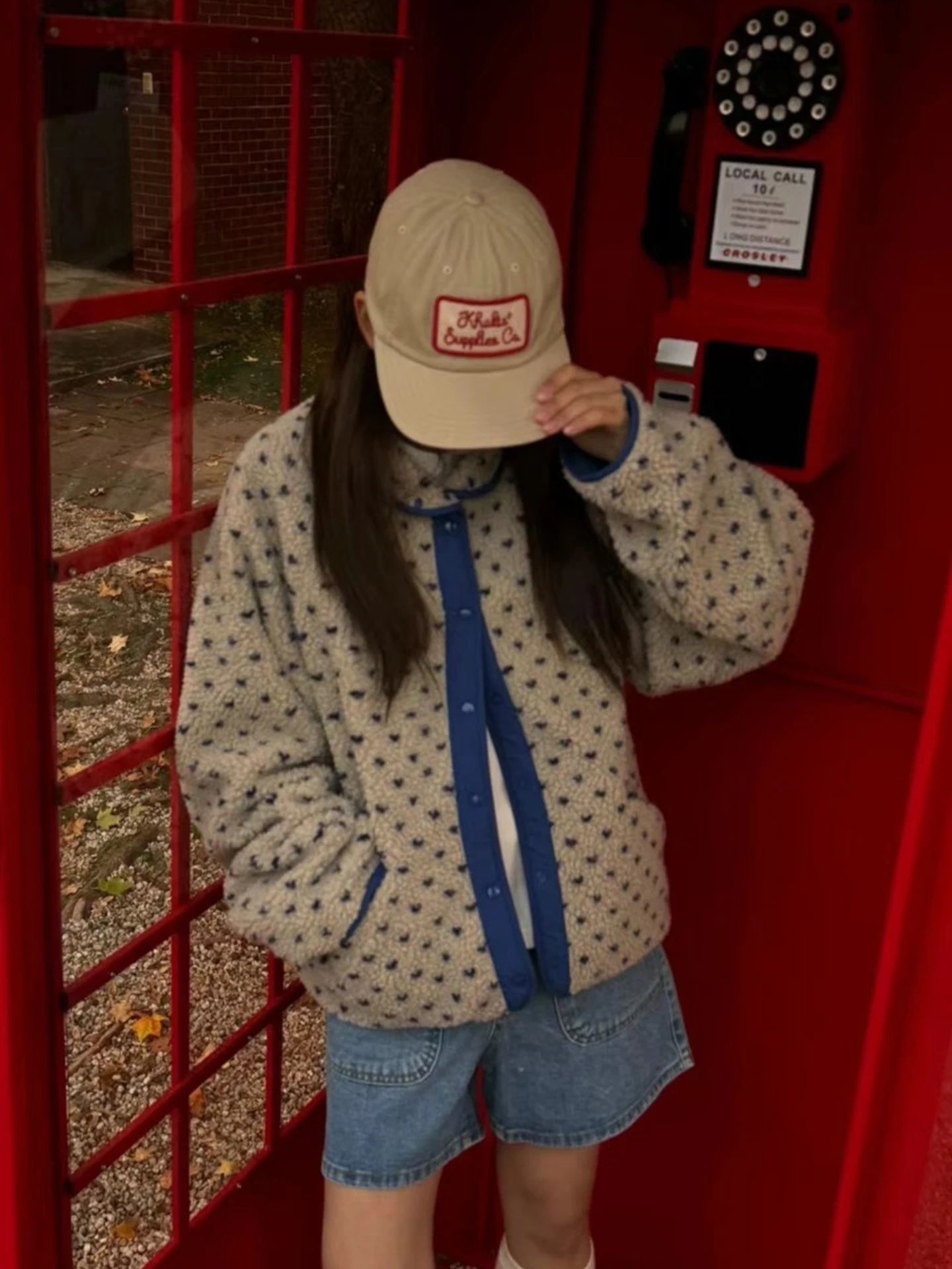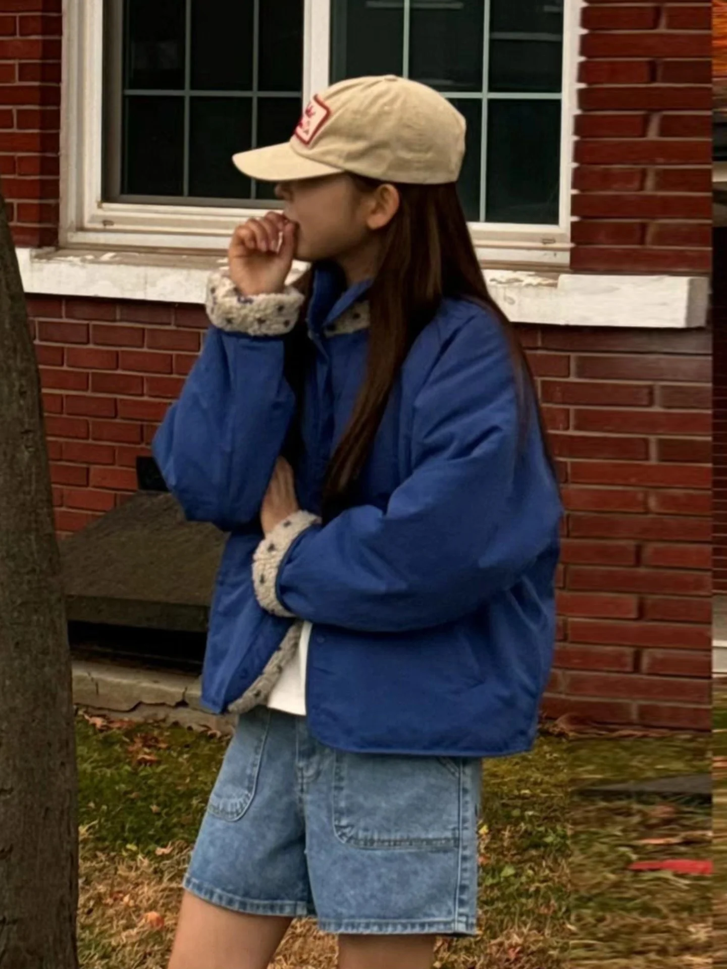 シックなヴィンテージ風両面着用ラムファーコットンジャケットショートアウターウェアレディース長袖折り返し襟ハート柄刺繍 - TopDealBox