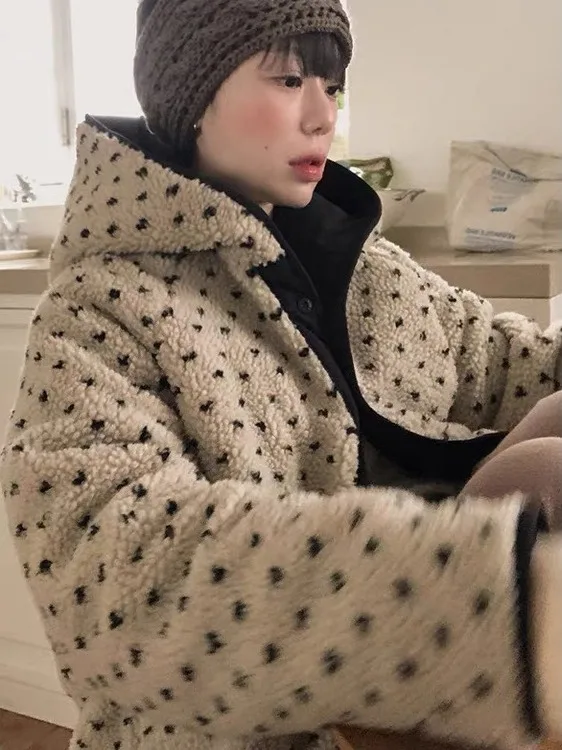 トレンディな花柄ラムウールコットンジャケット女性のフード付きコート韓国スタイルの年齢を超越したデザイン冬新作 - TopDealBox