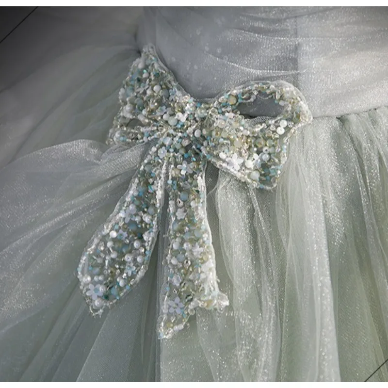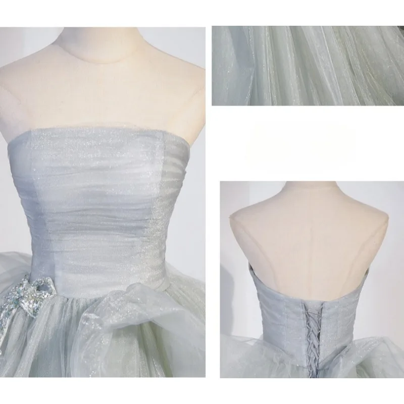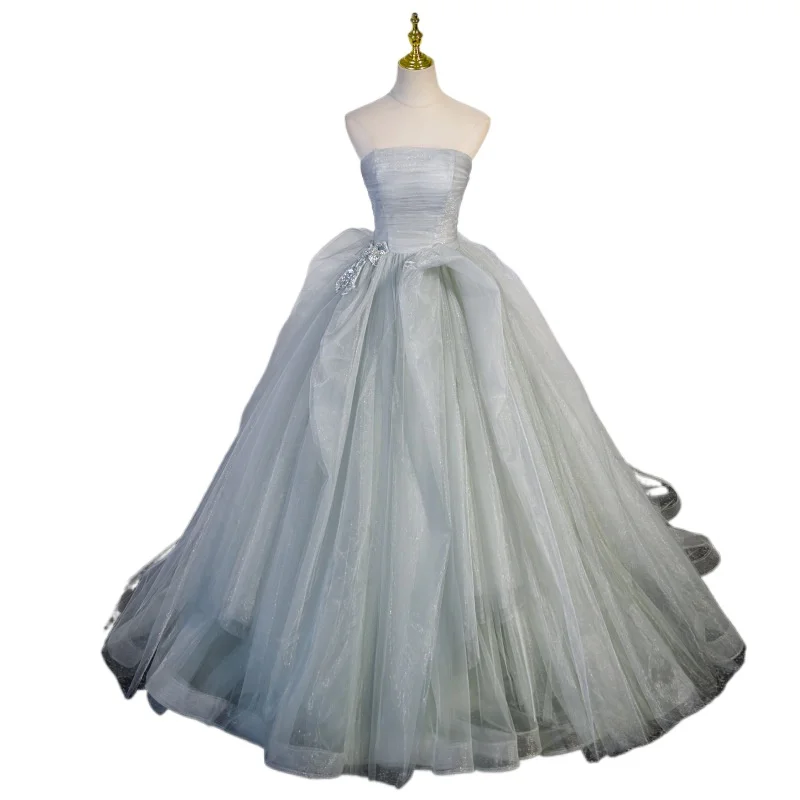 ストラップレス妖精風イブニングドレス、軽やかなウェディングドレス、ハイエンドラグジュアリーニッチ、司会者気質、フレンチスーパーフェアリー、音楽試験ドレス - TopDealBox