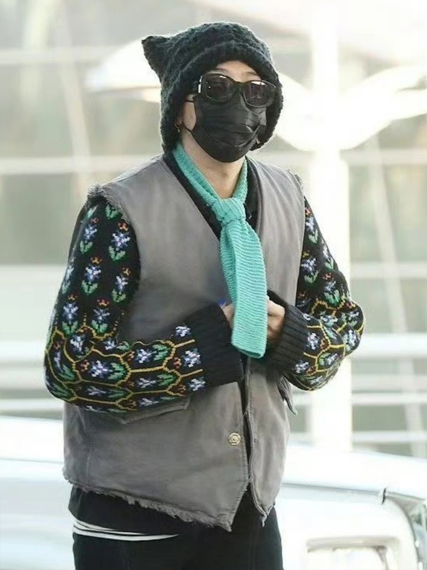 ブルーニットスカーフ女性の秋冬新スタイル韓国の雰囲気多用途首保護小さなネックウォーマーファッションアクセサリー - TopDealBox