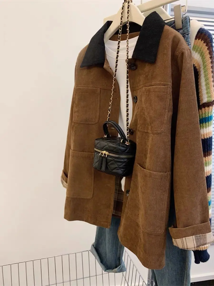 ♡Quick viewルーズフィット グリーン ブラウン ジャケット ベルリン フォグ シリーズ レディース ショート アウター クリーンフィット スタイル ショルダーパッド コットン 長袖 ダブルボタン17924 JPYHot