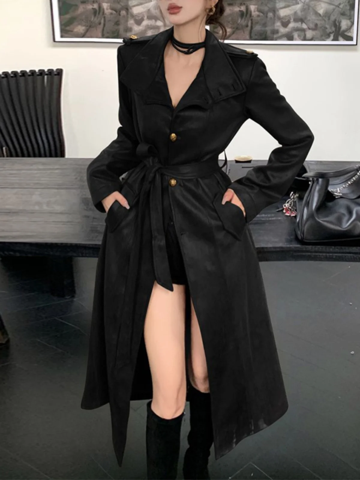 ♡Quick viewシックなヴィンテージレディースレザージャケット、ゆったりとしたスリムフィット、シングルボタン、高級感のある鹿革ベルベットスーツトップ、通勤スタイル2976 JPYHot★★★★★4.3