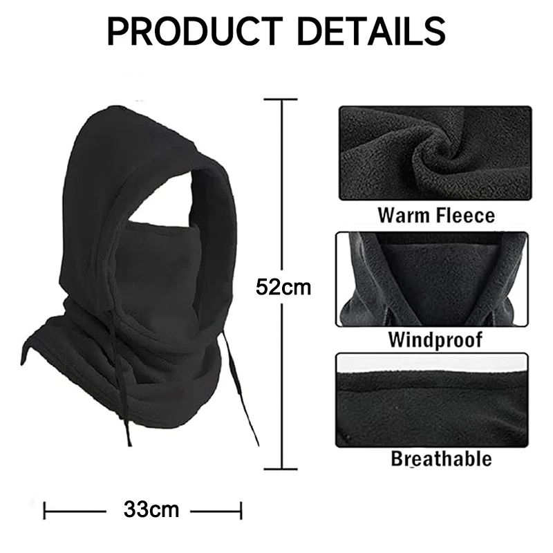 ユニセックス冬用バラクラバニットフード防風バイクスカーフキャップ男性女性用暖かいフリーススキーマスク、ドローストリング付き防寒ギア