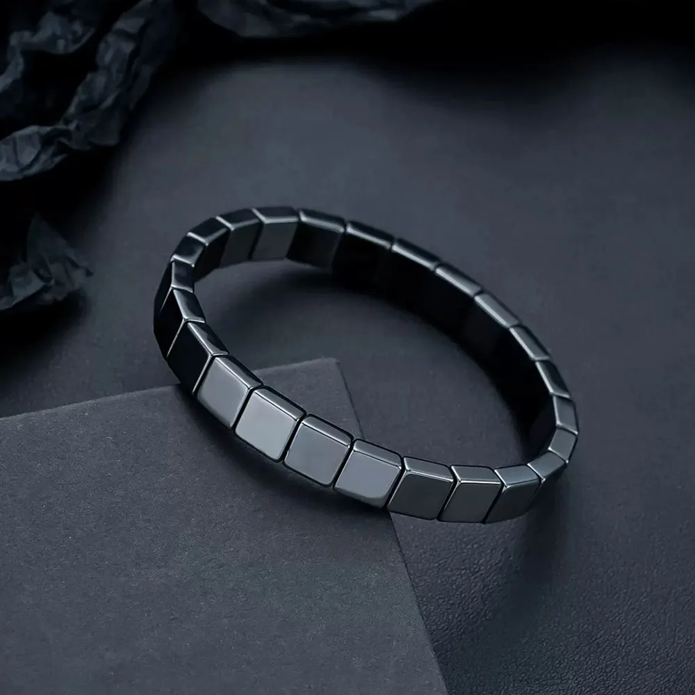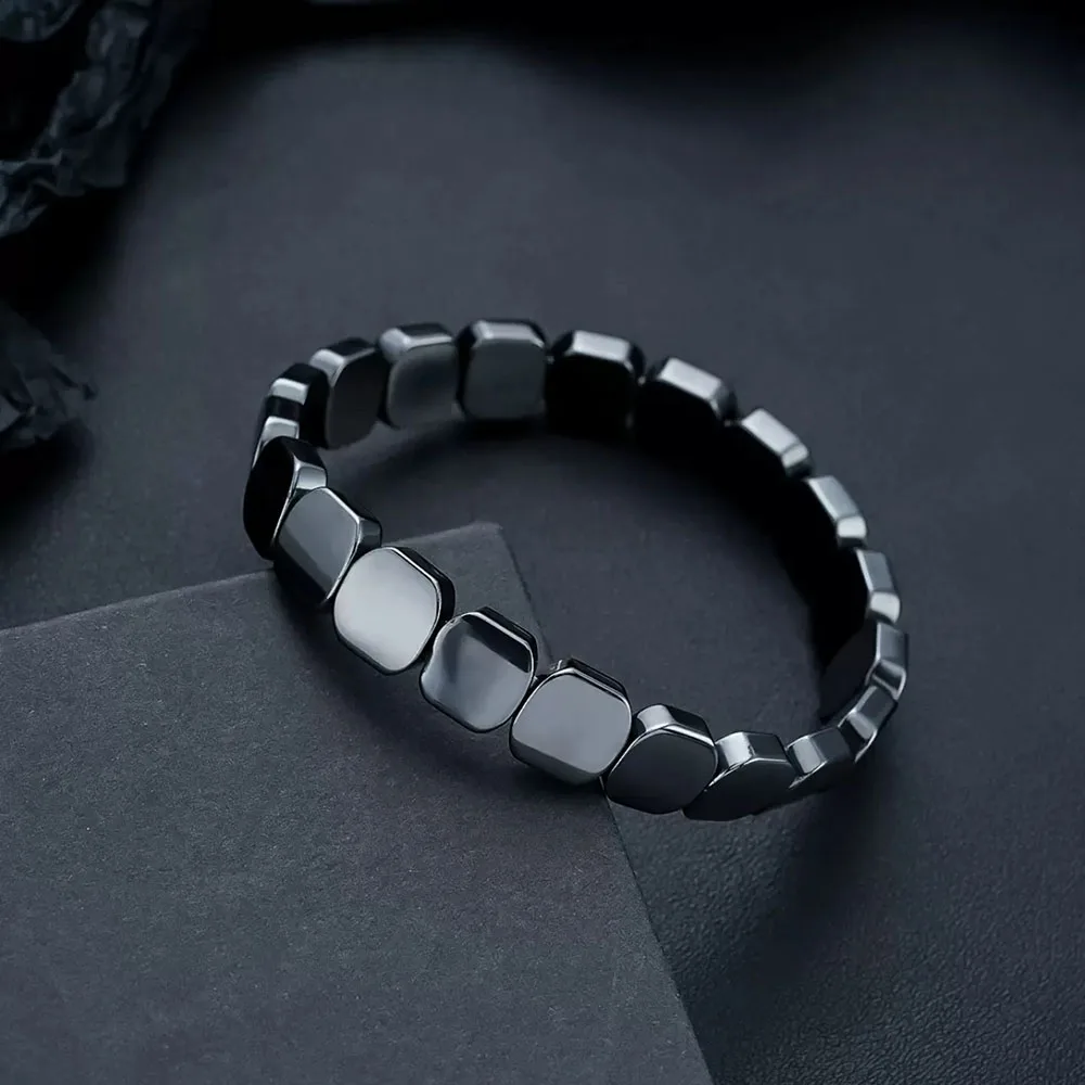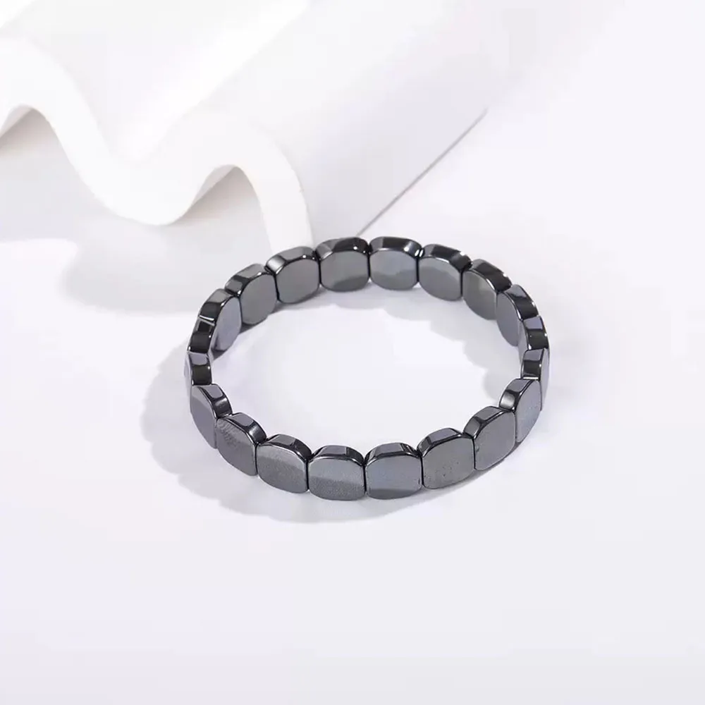熱い販売中!ヘマタイト、黒胆石、伸縮性のあるスクエアビーズブレスレット、男女兼用、卸売、迅速発送 - TopDealBox