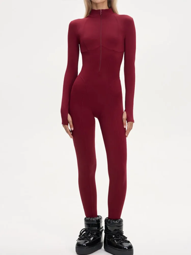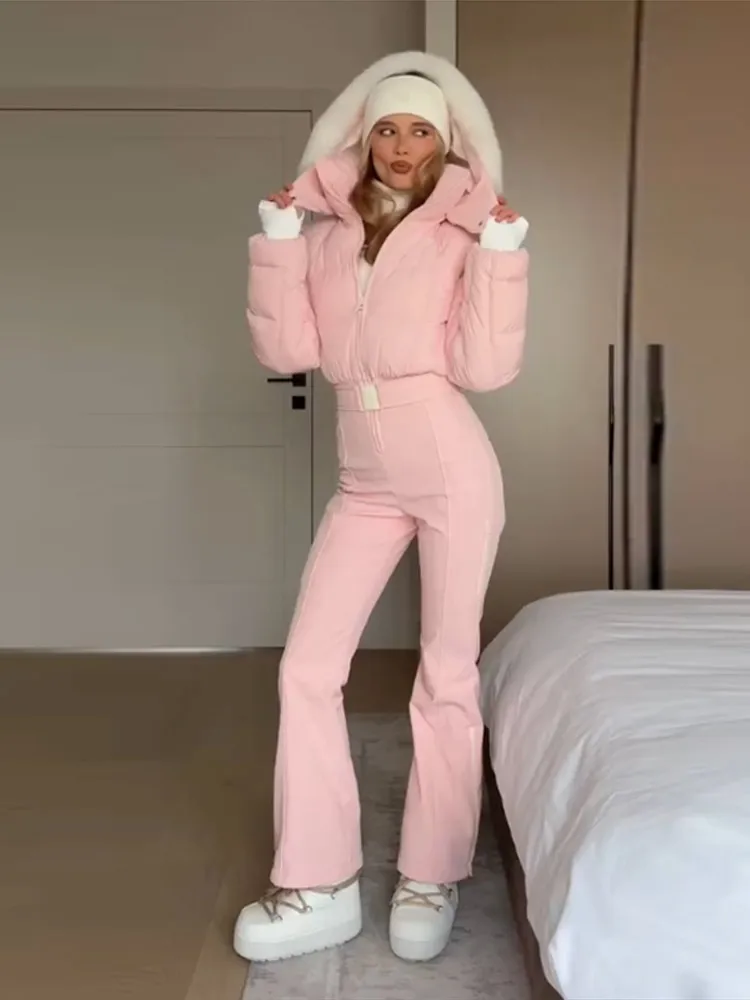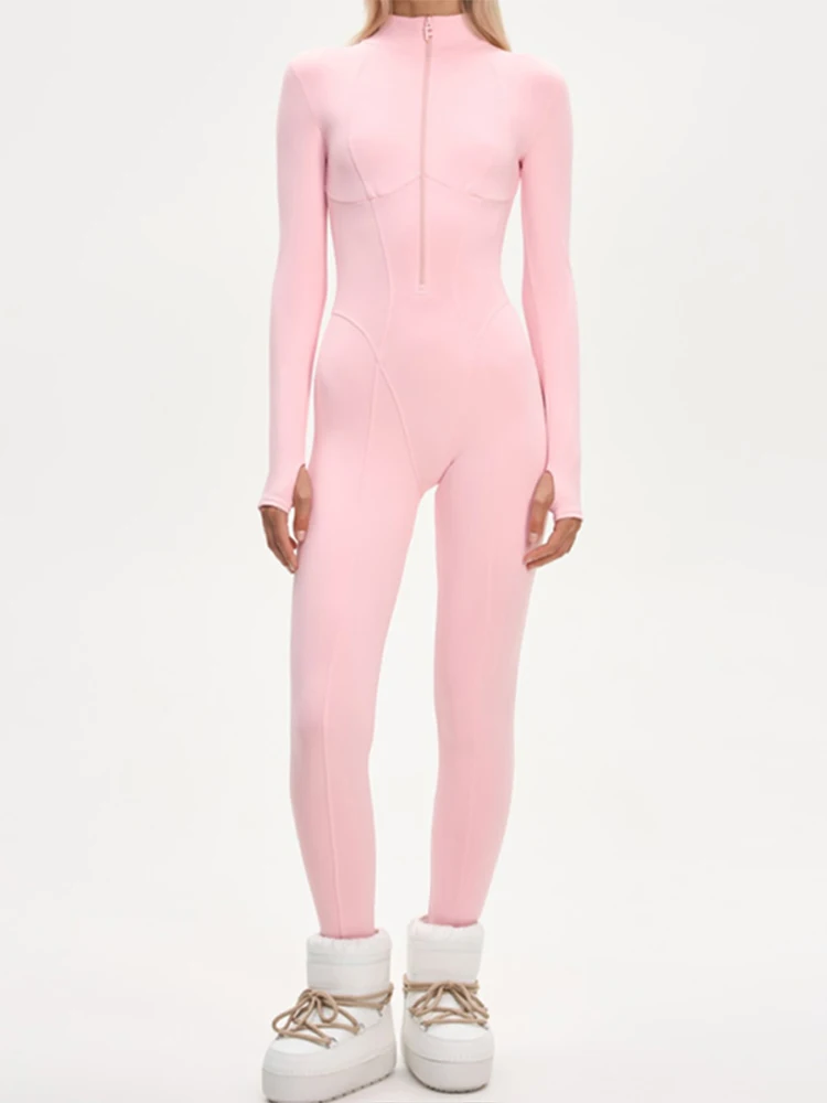 レディーススキーウェアジャンプスーツ防水スキーウェアフード付きアウターウェア厚手スーツスリム長袖冬アウトドアレディーススノーウェア - TopDealBox