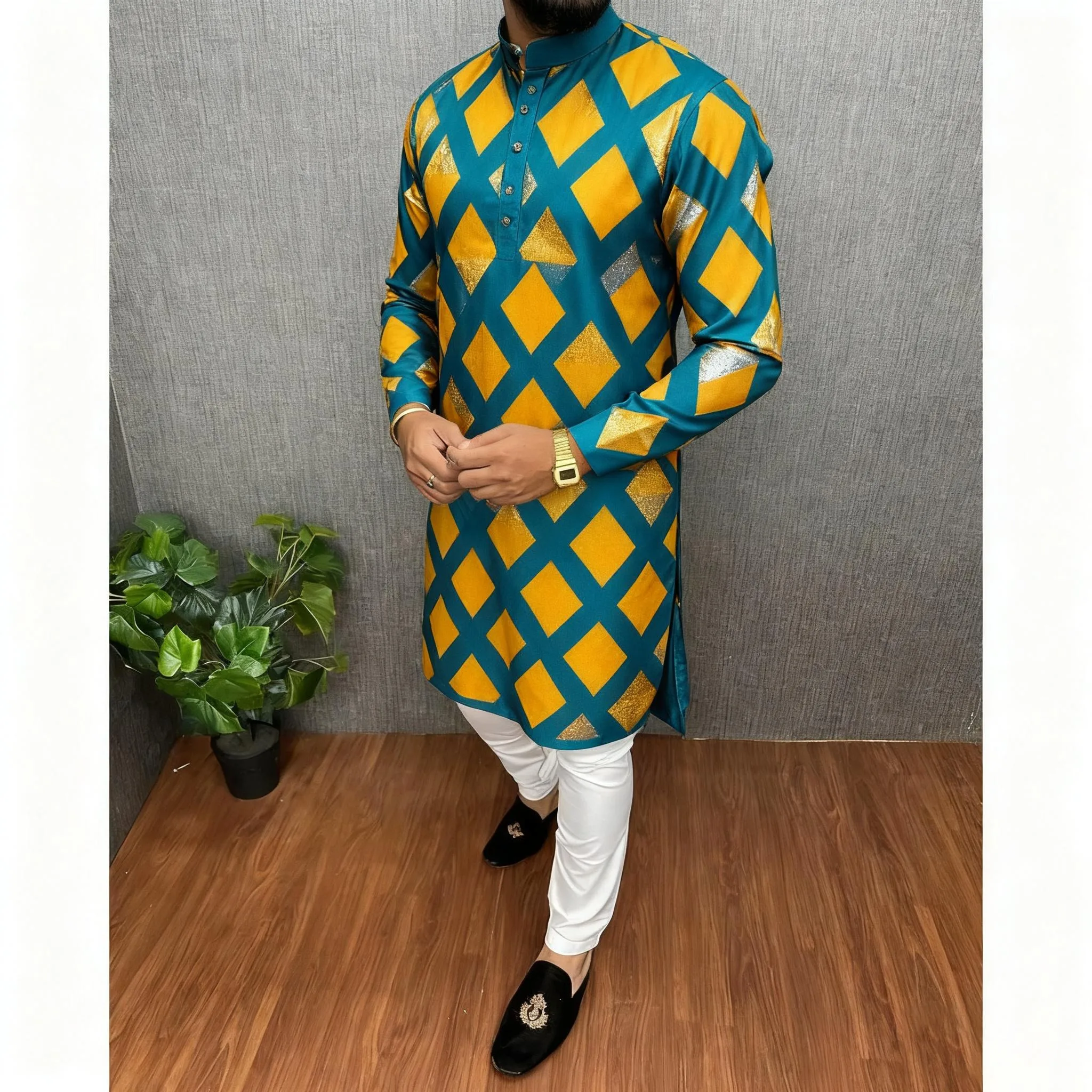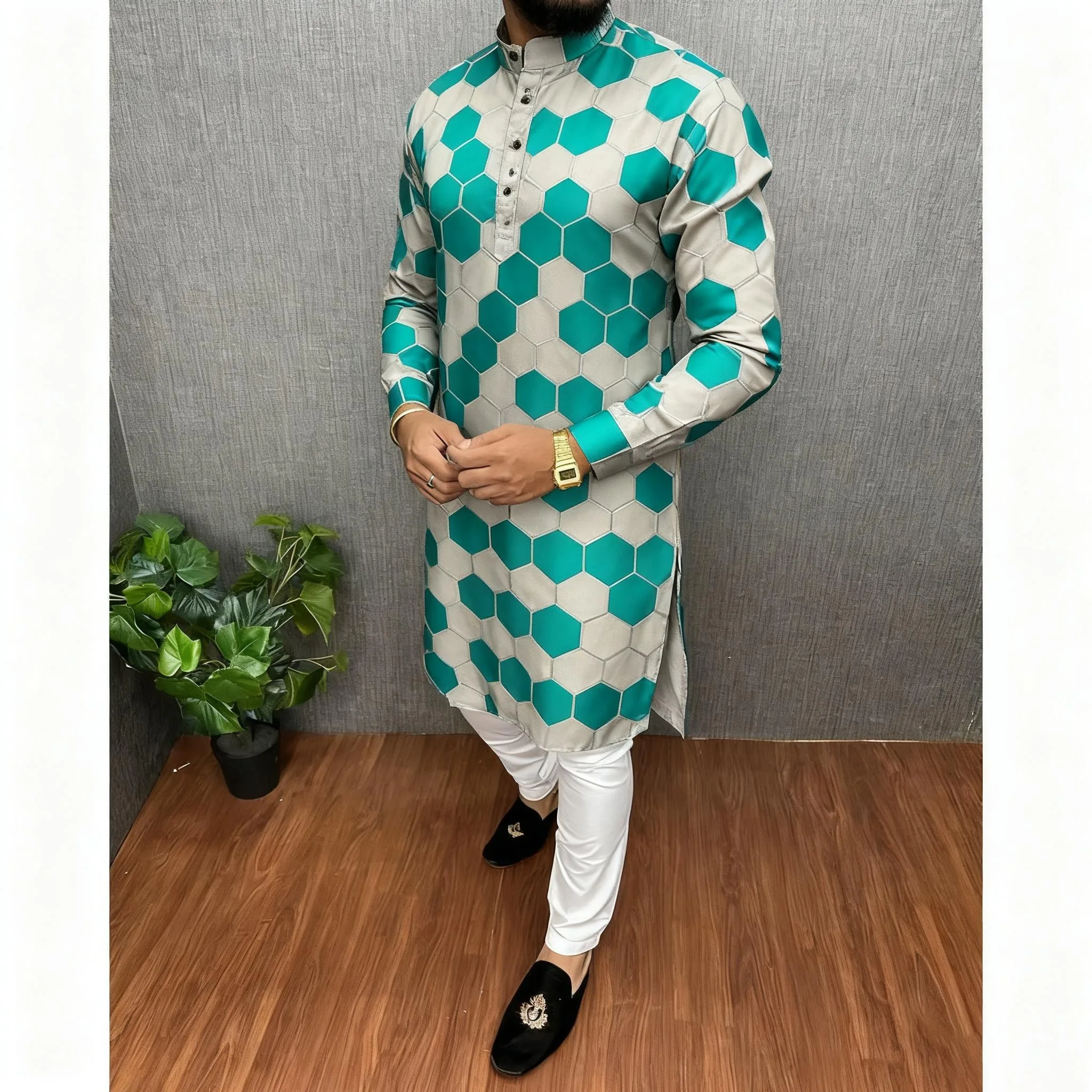 メンズイスラムアラビアアバヤローブ民族柄スタンドカラーユースミドル丈シャツ高級コートムスリム服男性用 - TopDealBox