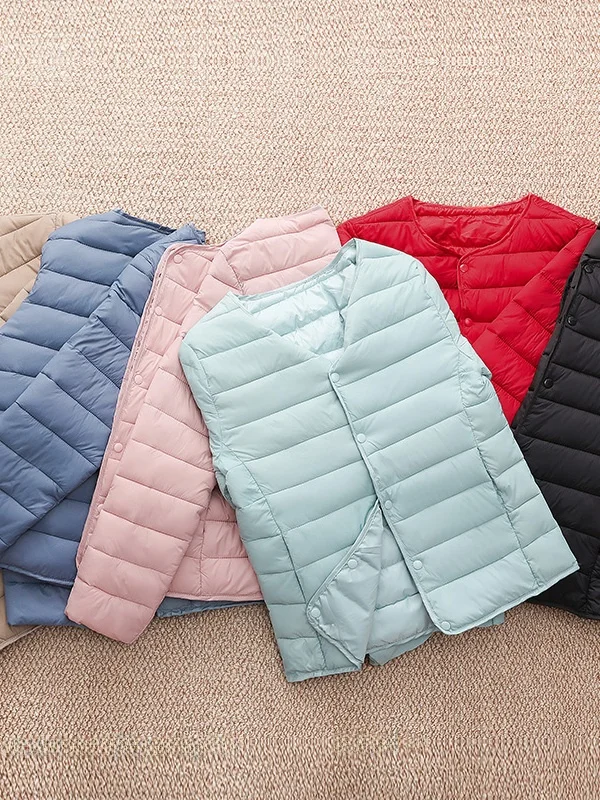 軽量ローネックレディースダウンコットンインナーベストスリムフィット保温性のある小型コットンジャケットナースインナーコットンコートトレンディ - TopDealBox