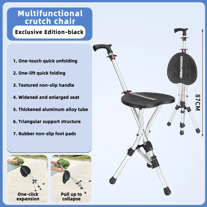 調節可能な歩行椅子 アルミニウム合金製 折りたたみ式杖椅子 軽量ポータブルスツール 高齢者向け 屋外および家庭用 - TopDealBox