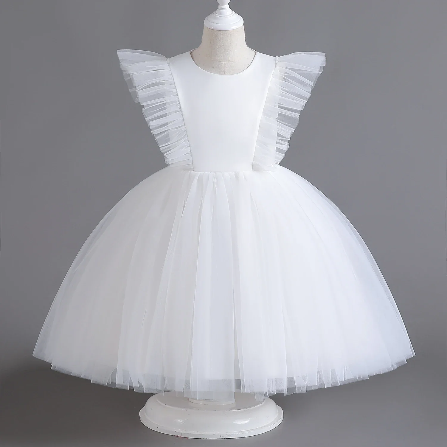 エレガントな女の子ふわふわドレスフラワーベビー結婚式衣装誕生日衣装白初聖体チュチュガウン子供ガラ服 - TopDealBox