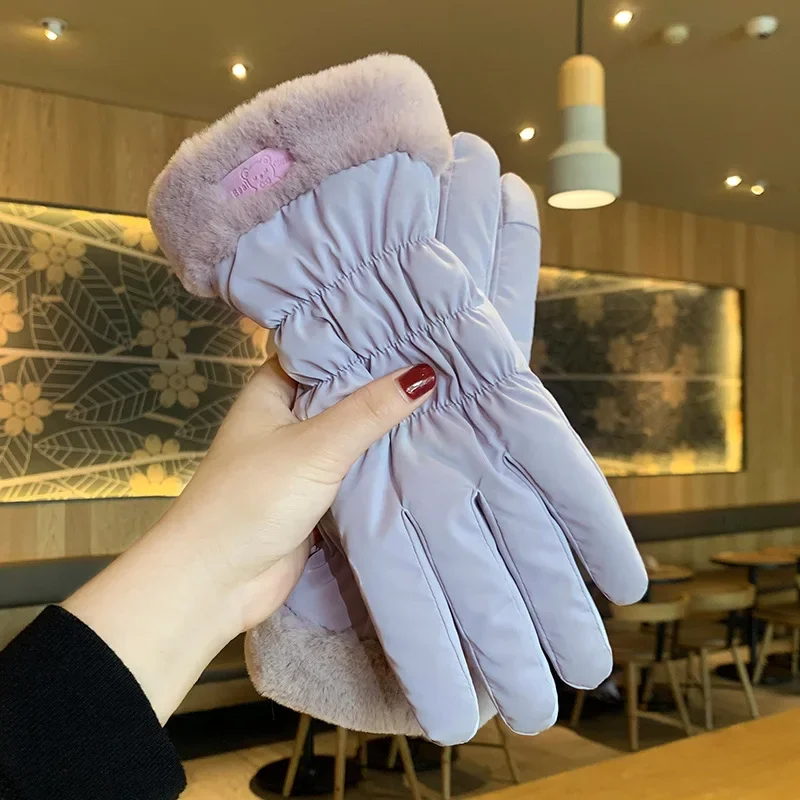 スキーグローブ女性冬フリース肥厚暖かい豪華な綿防水タッチスクリーン手袋屋外乗馬登山用 - TopDealBox