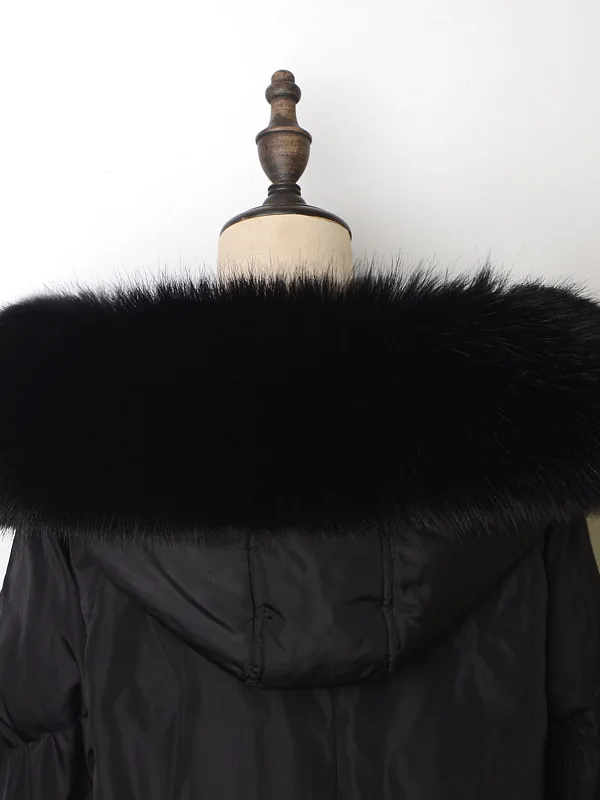 イミテーションフォックスファーカラーダウンパーカーフェイクカラーボタンリング付きコットンコート大型コート人工ファーカラー(中国製) - TopDealBox
