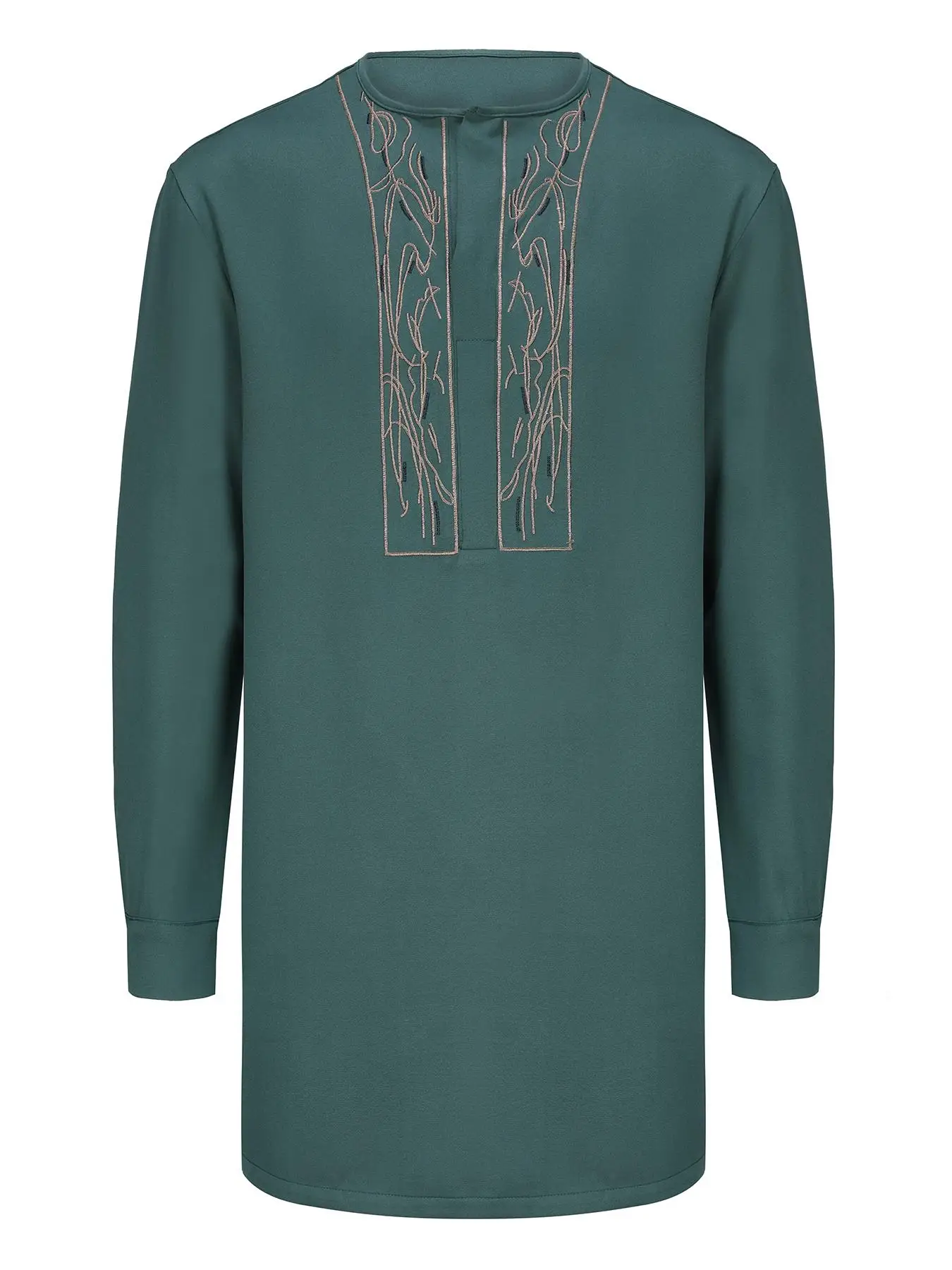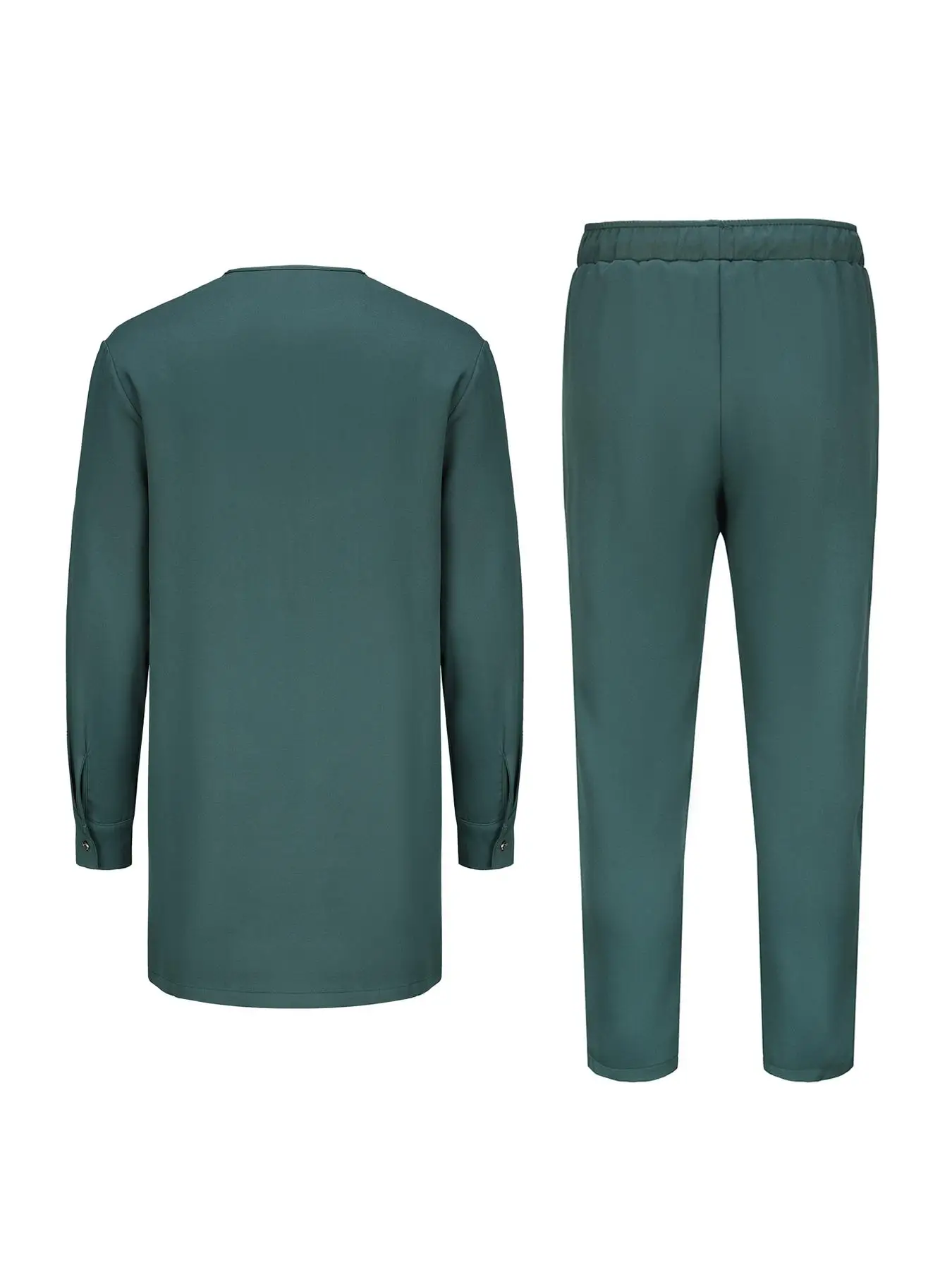 緑の丸首刺繍入り伝統的なエスニックスタイルの男性用ツーピースセット(結婚式や宴会の機会に最適、アフリカ風) - TopDealBox