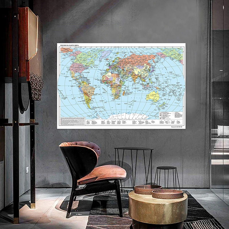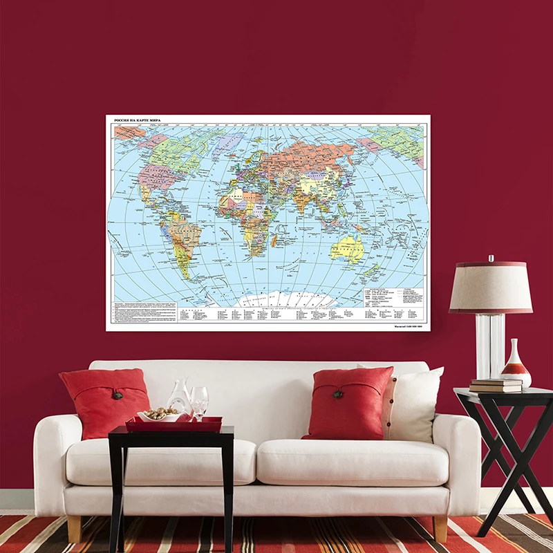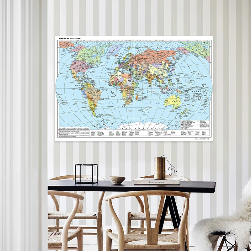 世界地図 国旗付き世界政治地図 ウォールアートプリント 非フレーム絵画 学校用品 ホームデコレーション - TopDealBox