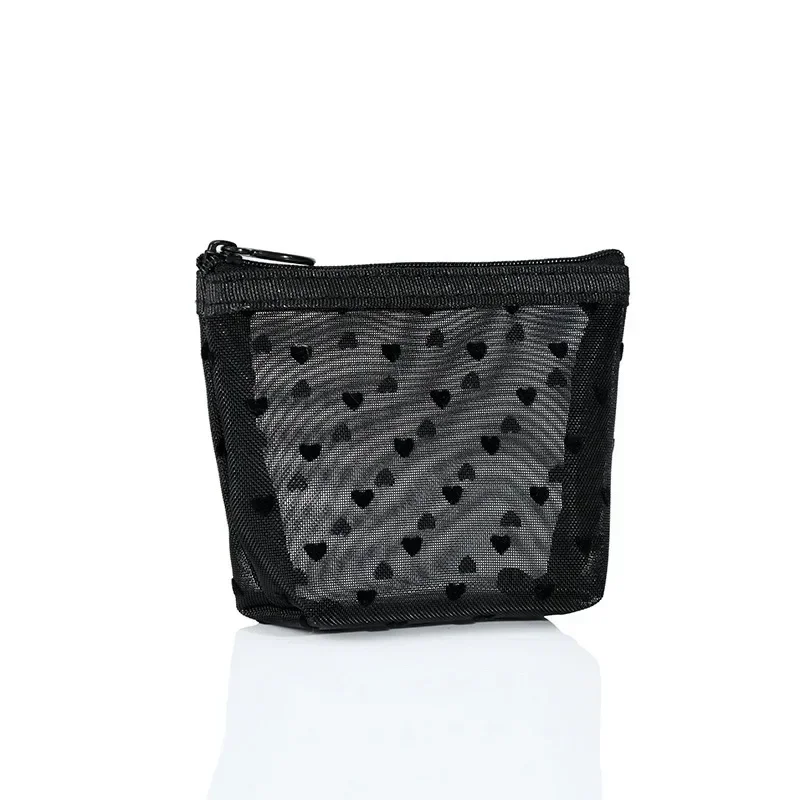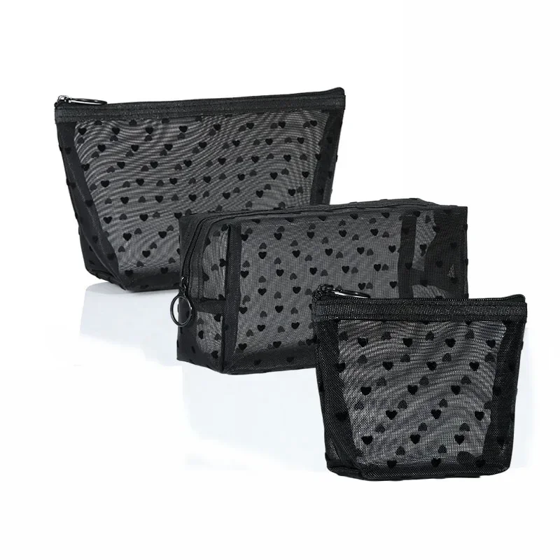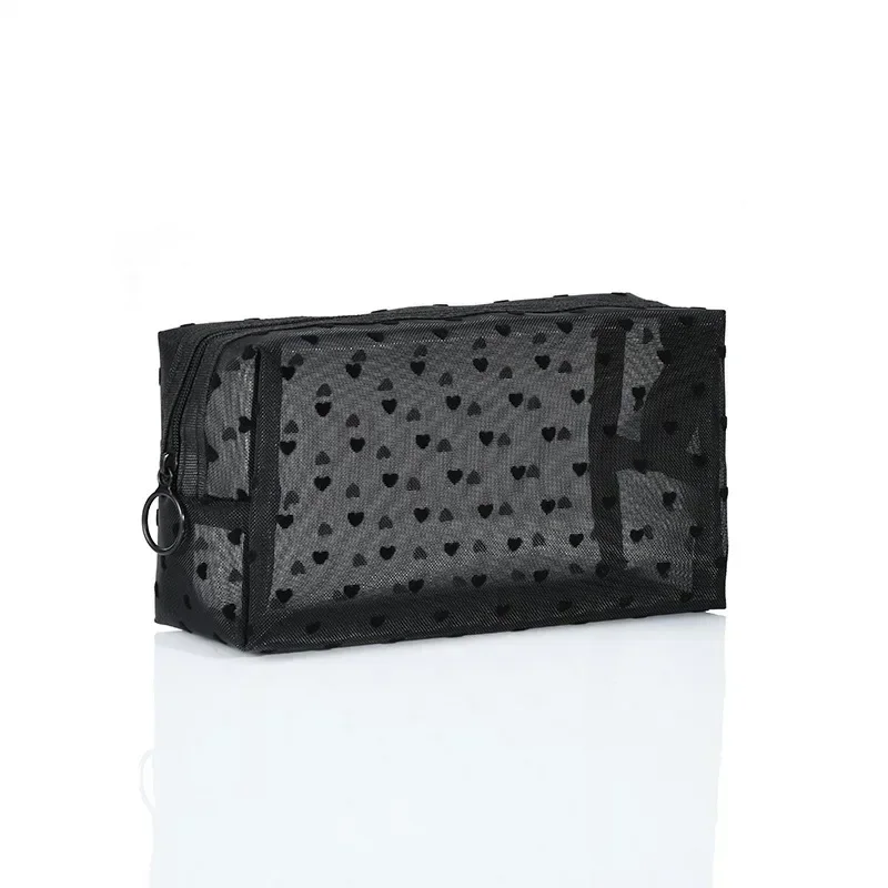 1 個透明メイクアップバッグ女性ガールトラベルストレージウォッシュバッグメイクアップオーガナイザーケースポーチラブハートメッシュ化粧品バッグ - TopDealBox