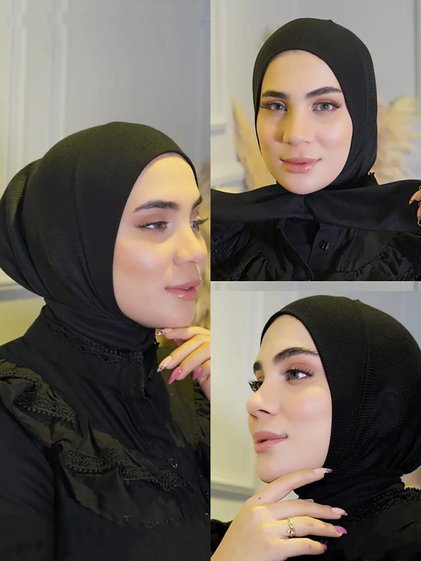 女性用の薄いインテリアヒジャーブ、プレーンインスタントターバン、スレッドテクスチャ生地、1個 - TopDealBox