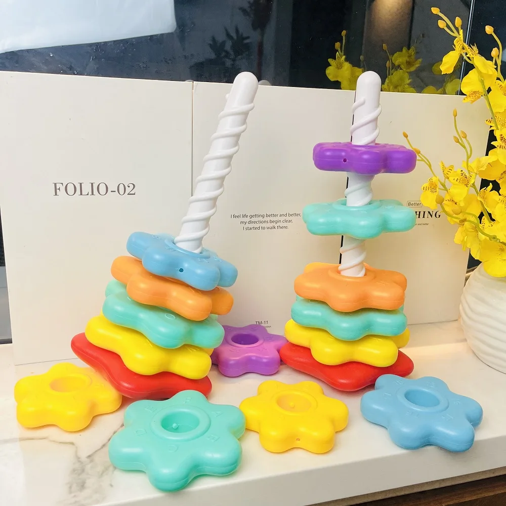 モンテッソーリ赤ちゃんのおもちゃレインボースピニングスタッキングおもちゃ幼児回転タワーゲーム赤ちゃん早期教育 1-3 年ベビーリングおもちゃ - TopDealBox