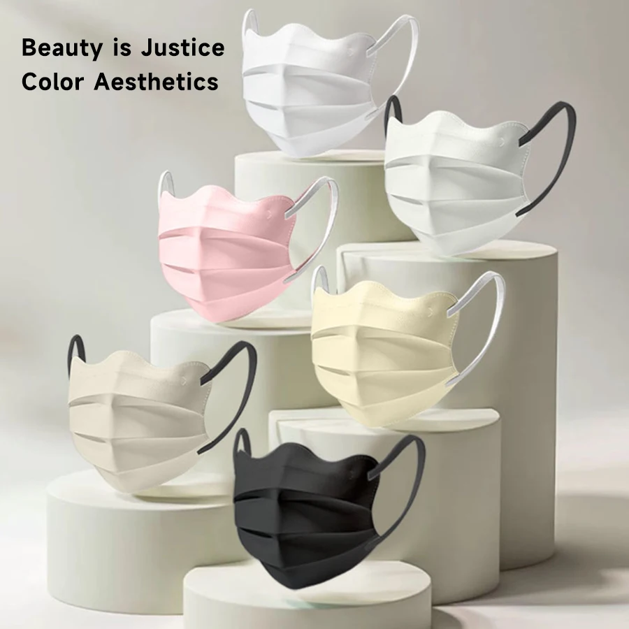 1-90個 ​ ファッション使い捨てフェイスマスクモランディカラー 3 層個別包装保護防塵フェイスカバー形状デザイン - TopDealBox