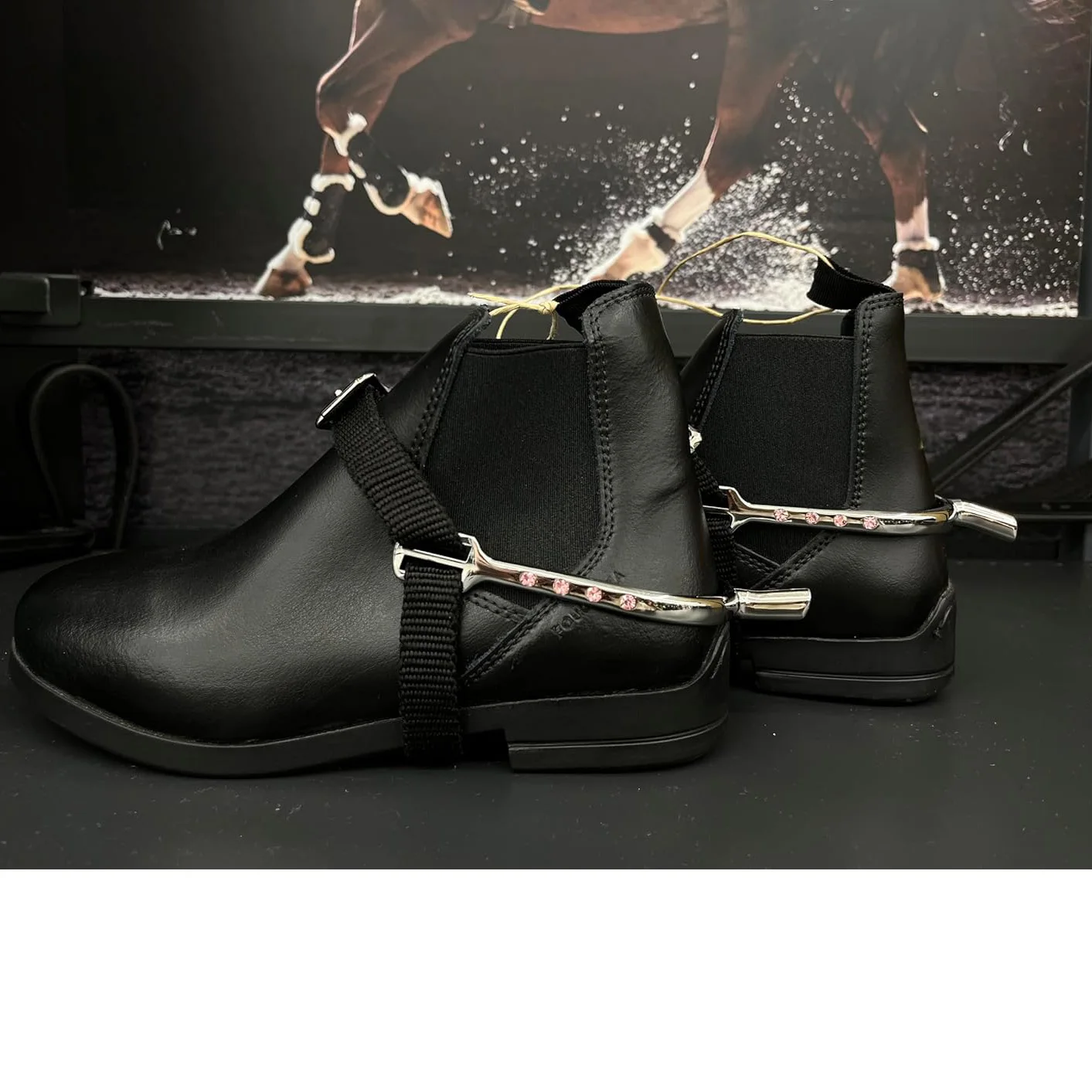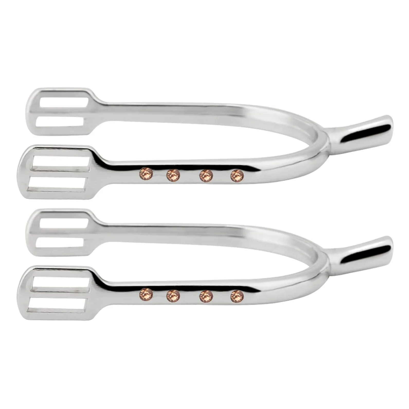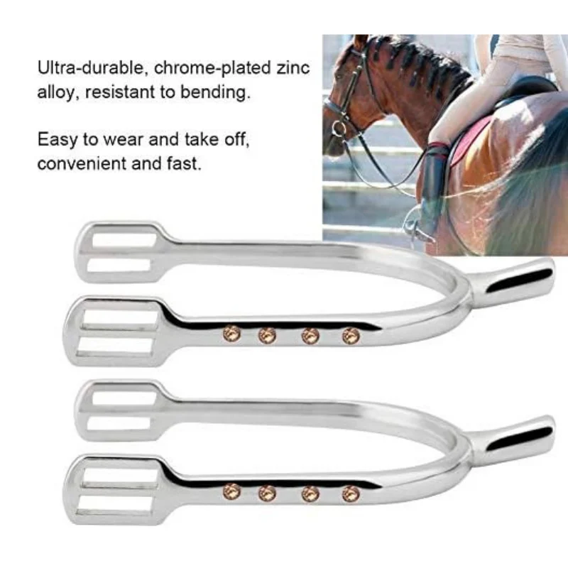 1 ペア英語拍車ストラップ付き女性用亜鉛合金クロムメッキ乗馬拍車ラウンド拍車ラインストーン付き - TopDealBox