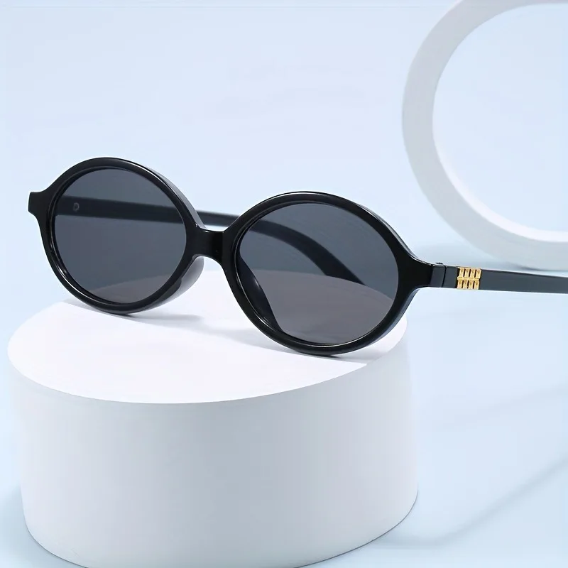 ファッショナブルなブラックラウンドレディースメガネ1組 - UV耐性グラデーションレンズ光沢のあるプラスチックフレーム、カジュアルウェアに最適 - TopDealBox