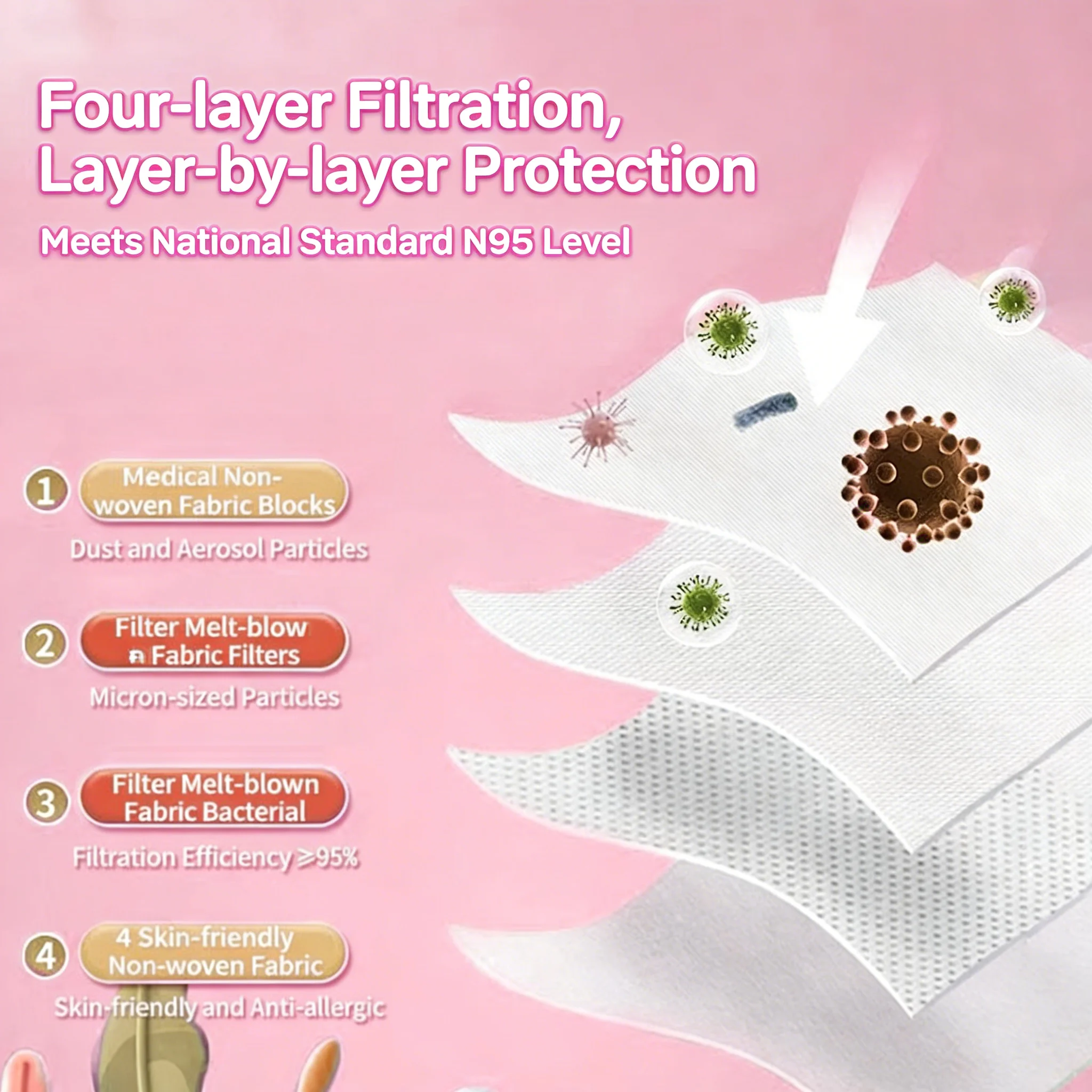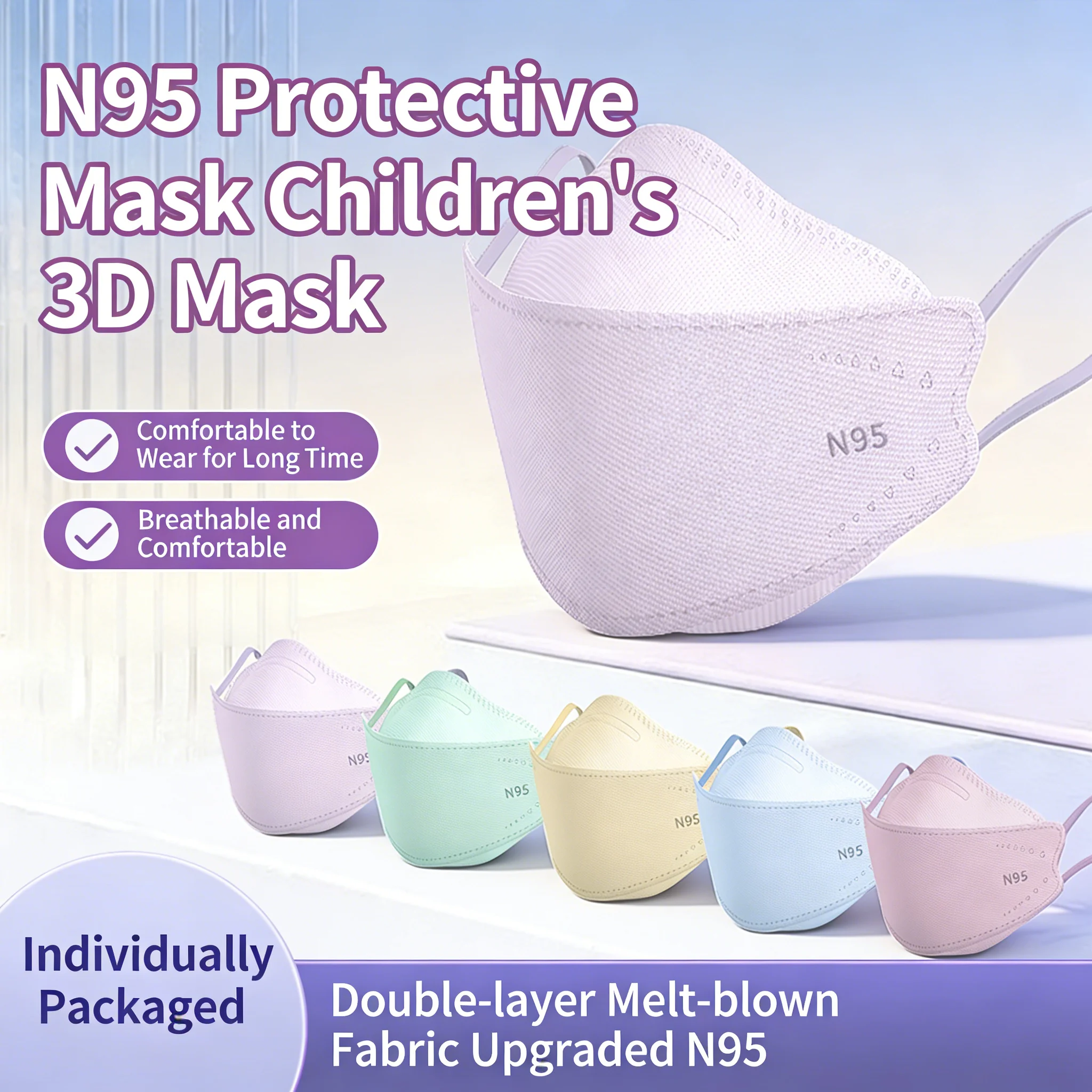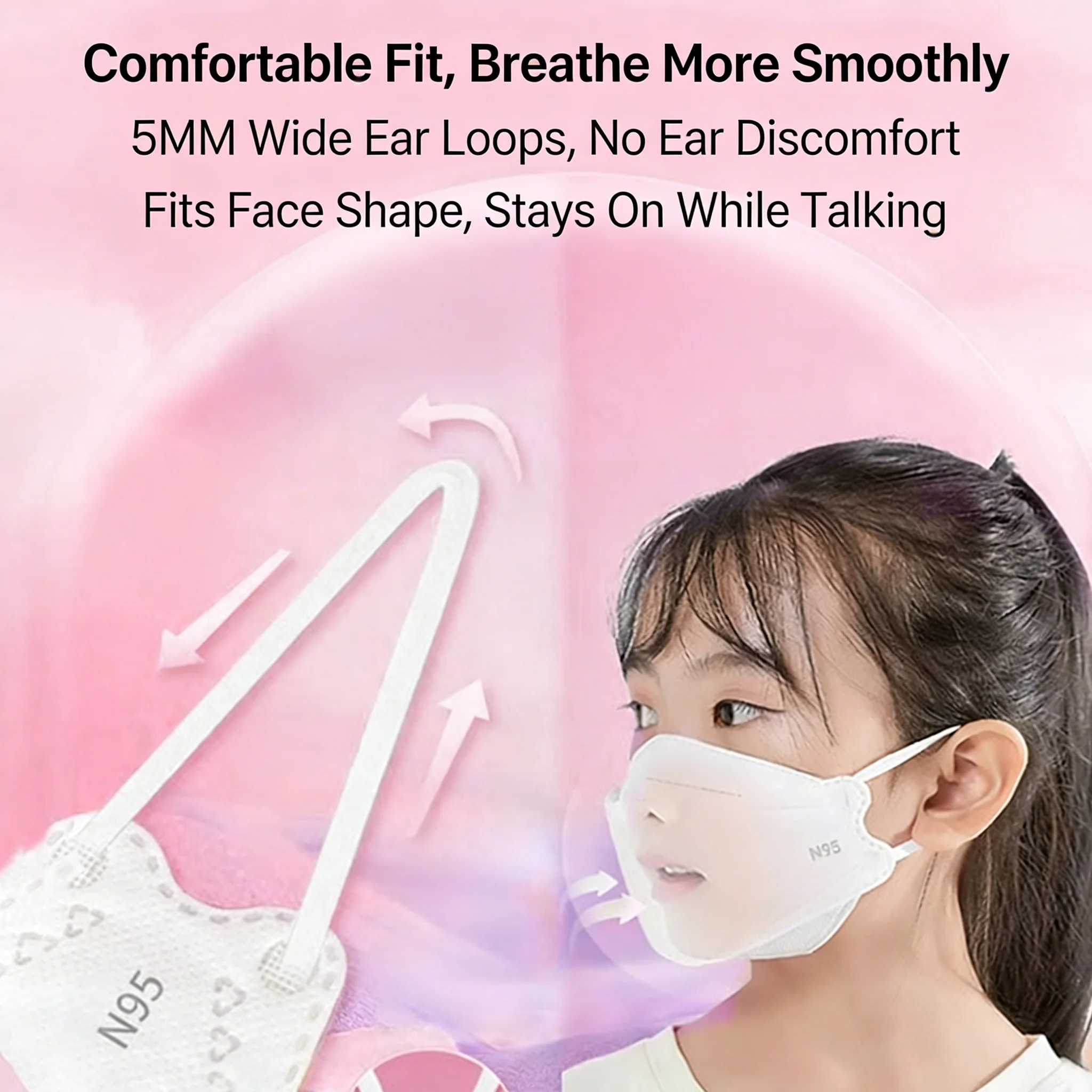 子供用使い捨てマスク 10枚入り N95 3層構造 子供用マスク 使い捨て 通気性 カラフル 可愛い 子供、女の子、男の子向け - TopDealBox
