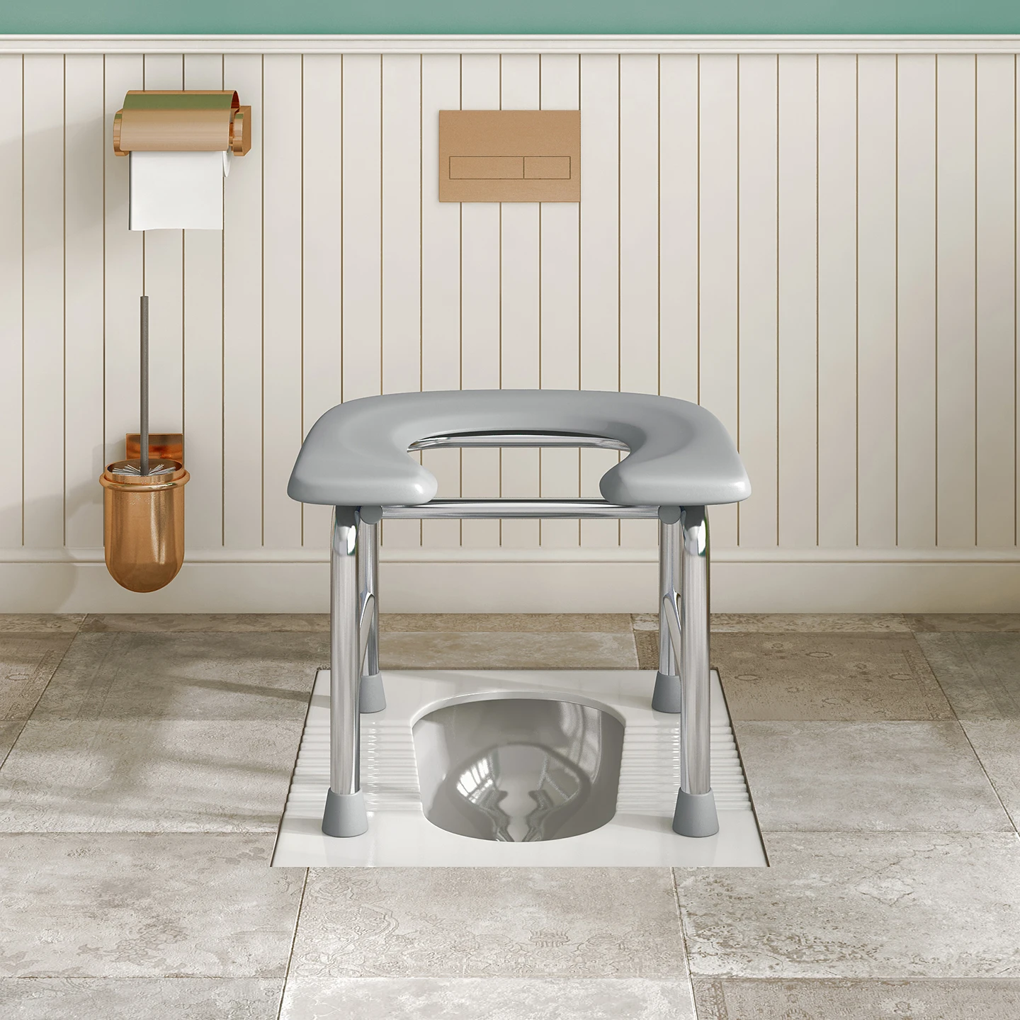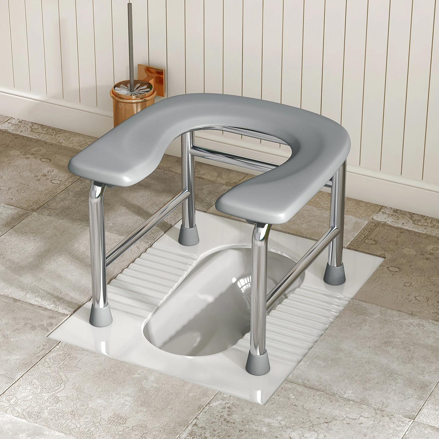 ♡Quick view最後の10件注文! 無料ギフト(バスマット、U字型クッション、フットマット)1個の調節可能なU字型トイレチェア、ステンレス製、高耐荷重、収納簡単、お手入れ簡単、高齢者や妊婦に適しています、トイレしゃがみ椅子、バススツールとしても使用可能5229 JPYHot★★★★★5.0