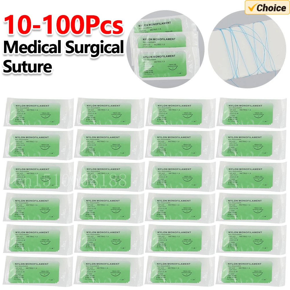 100-10 個 4/0 医療糸縫合糸ナイロンシルク獣医実習縫合糸キット非傷害医学生教育用 - TopDealBox