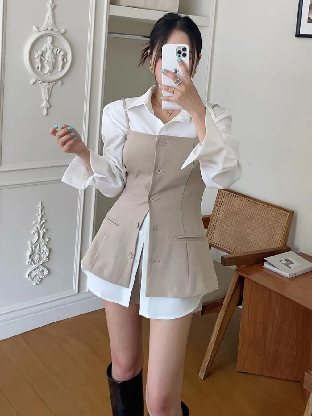 エレガントな通勤シャツとスーツベストセット女性のための綿 100% フォーマルウェアファッショナブルで品質を保証レディースシャツ - TopDealBox