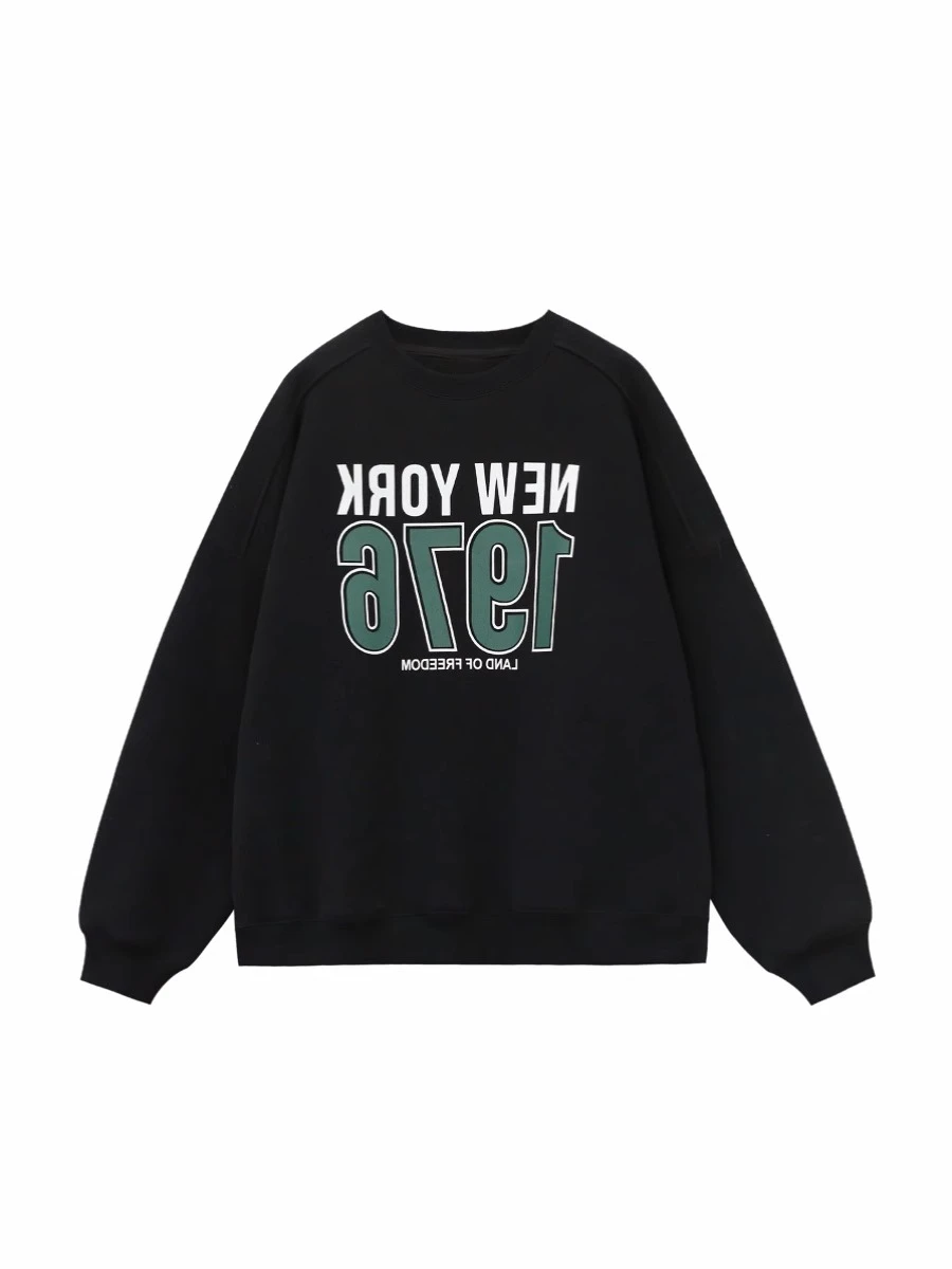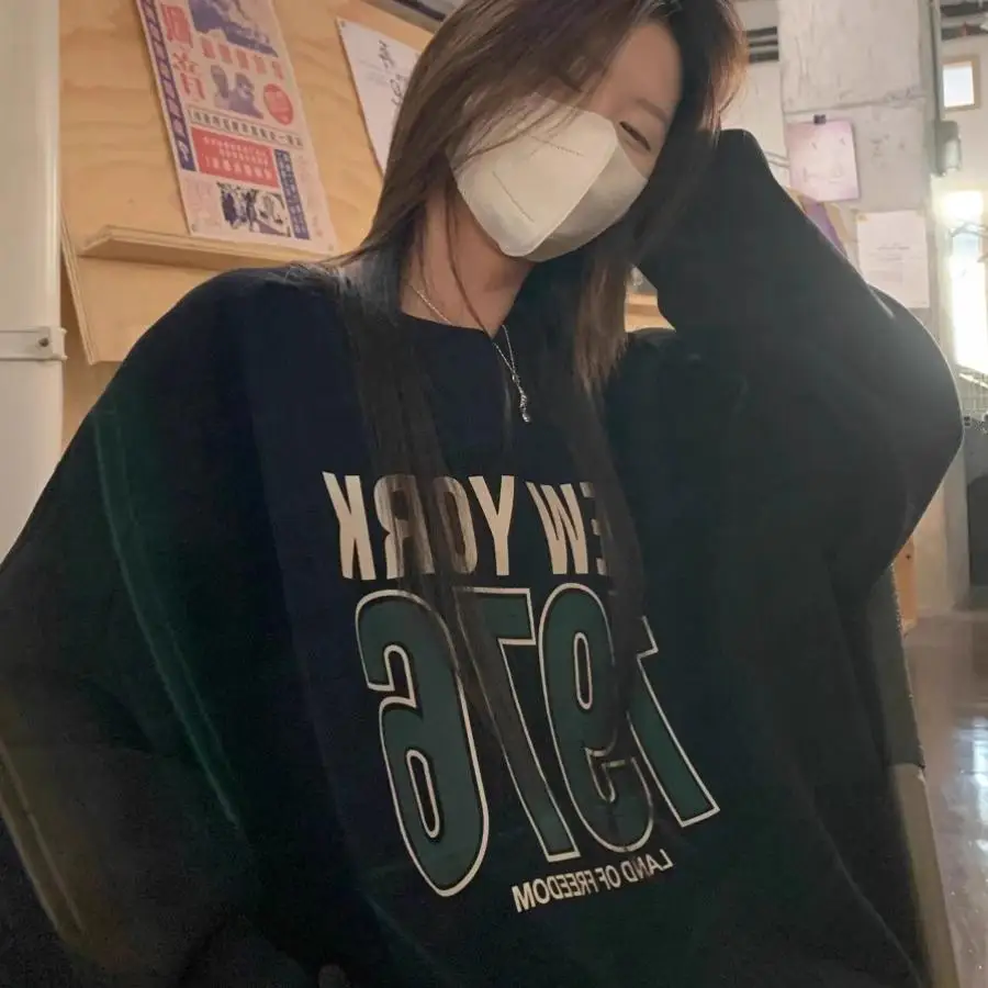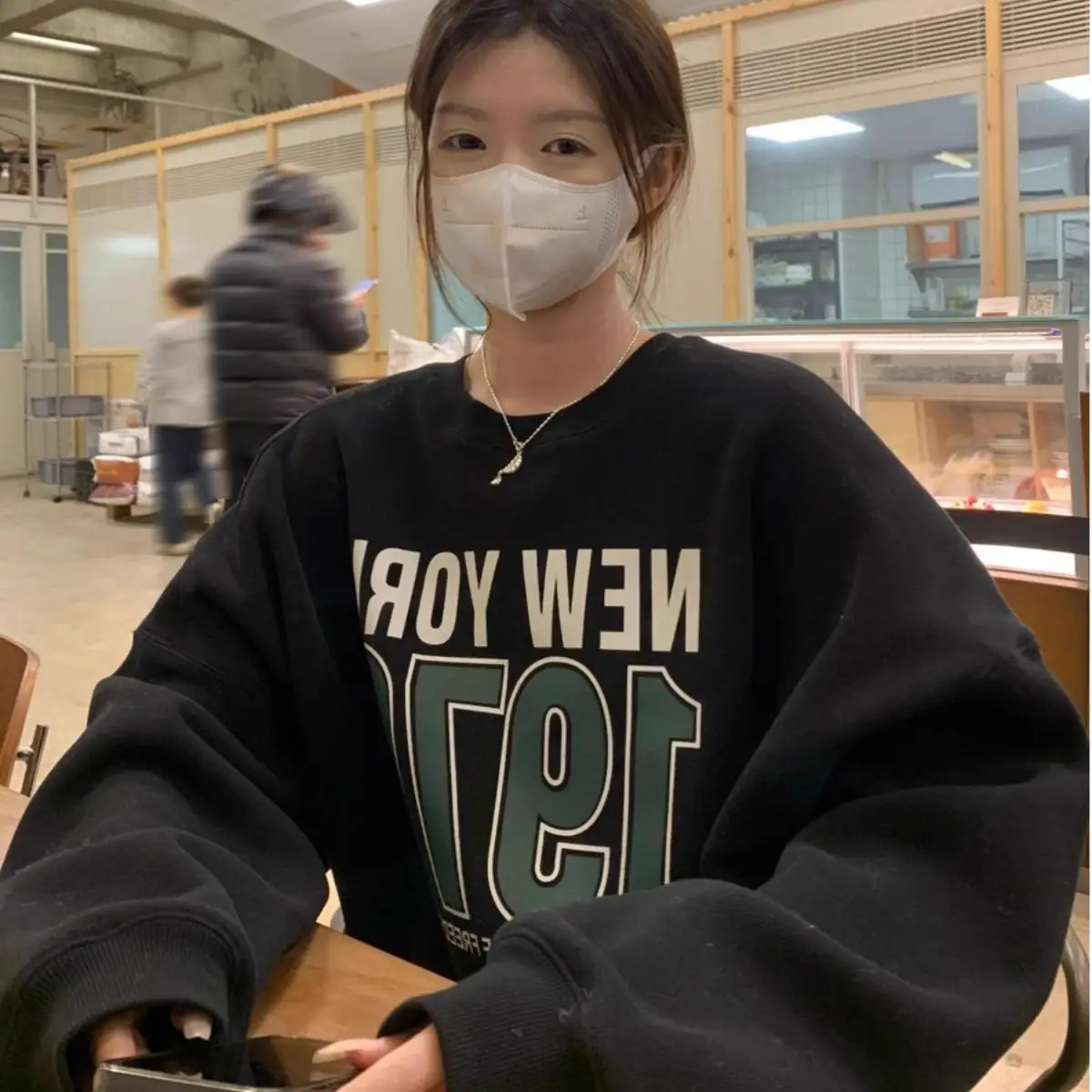 レトロアメリカンフリース裏地肥厚プリントルーズラウンドネック怠惰なスタイルオーバーサイズトレーナー女性綿 100% 冬 2024 - TopDealBox