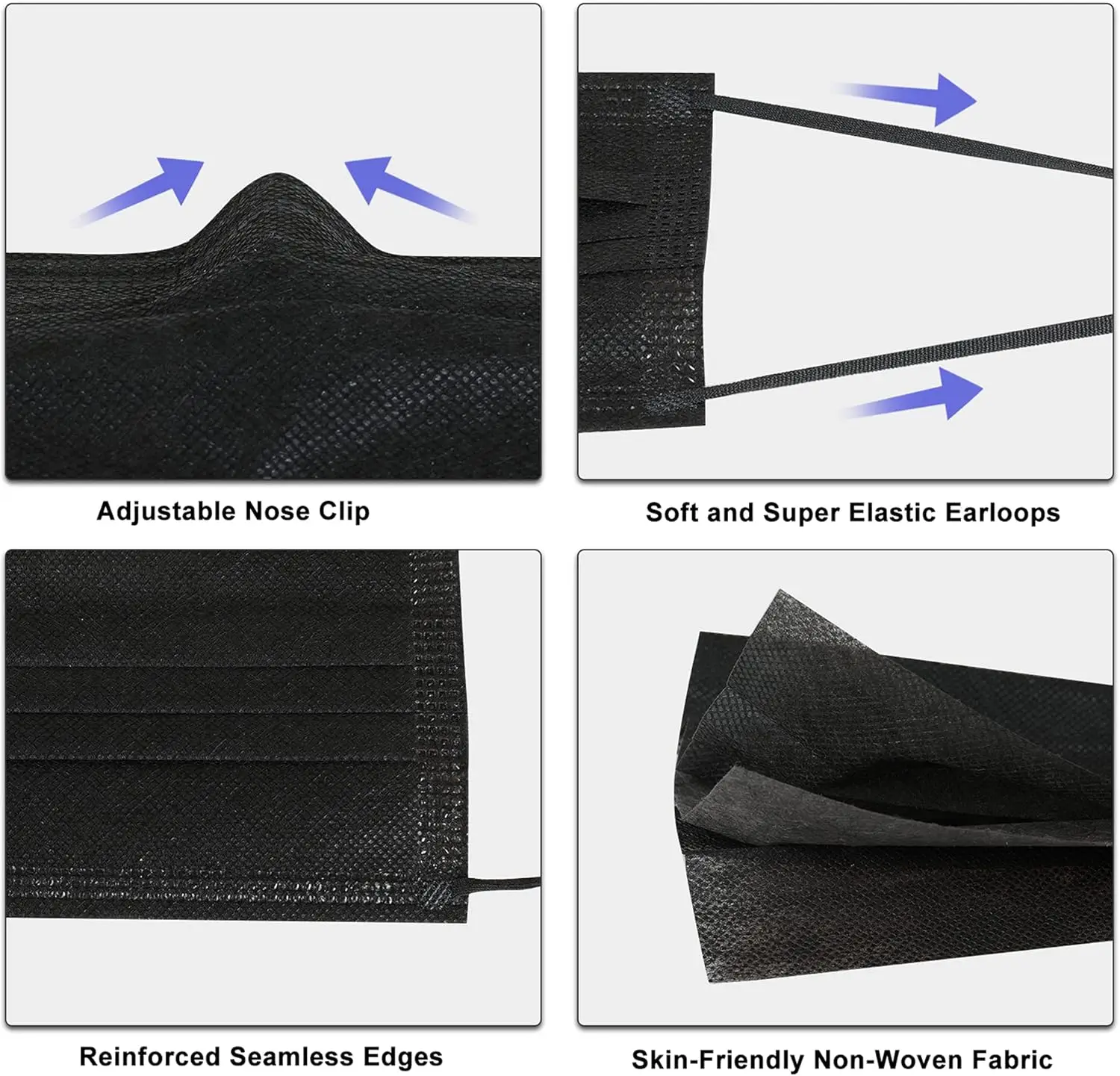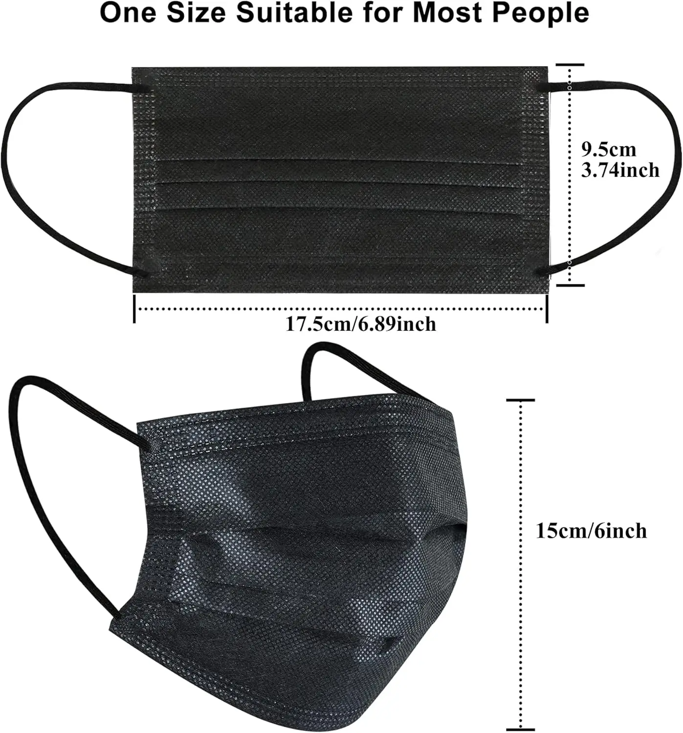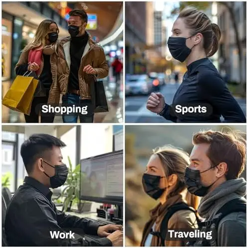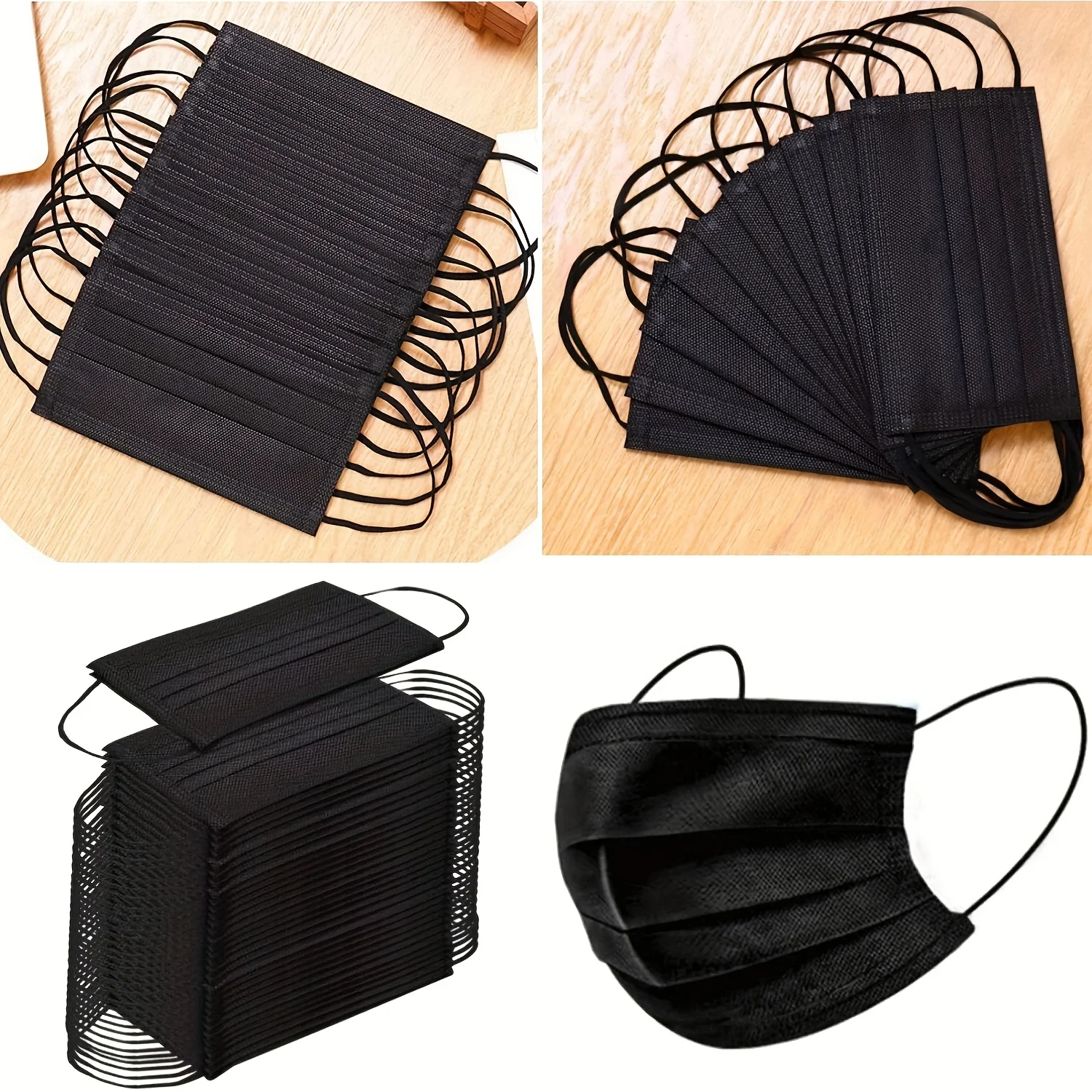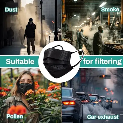 100枚の黒い使い捨て保護マスク - 3層構造で通気性があり快適、屋外、家族、通勤、オフィスに非常に適しています。 - TopDealBox