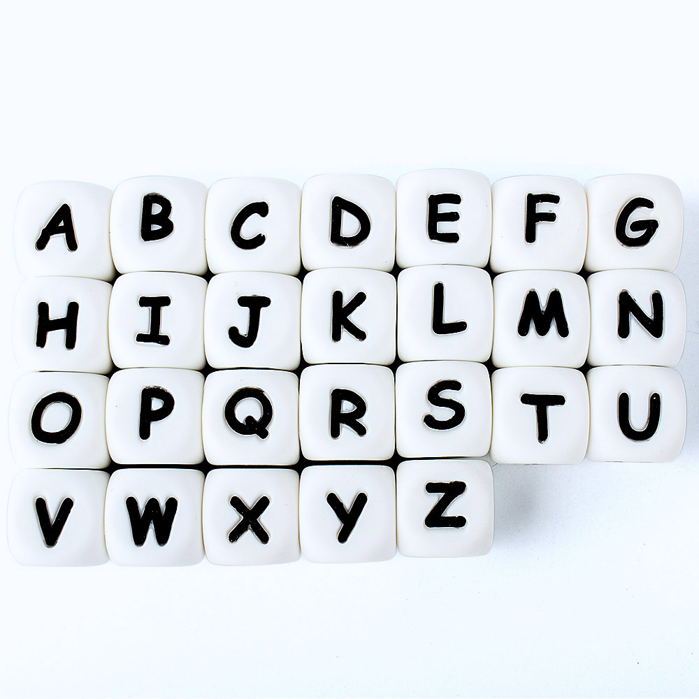 赤ちゃん用シリコン歯がためリング,10個または12mm,レタリング,bpaなし,DIYクリップ,チェーンホルダー,ギフト