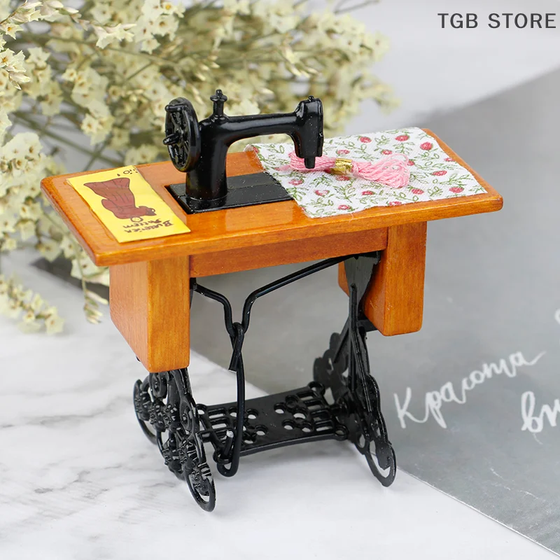 1/12 スケールドールハウス装飾用の布付きヴィンテージミニチュアミシン - TopDealBox