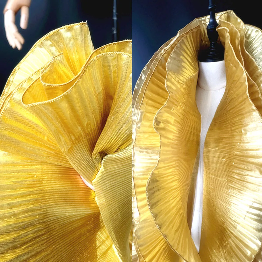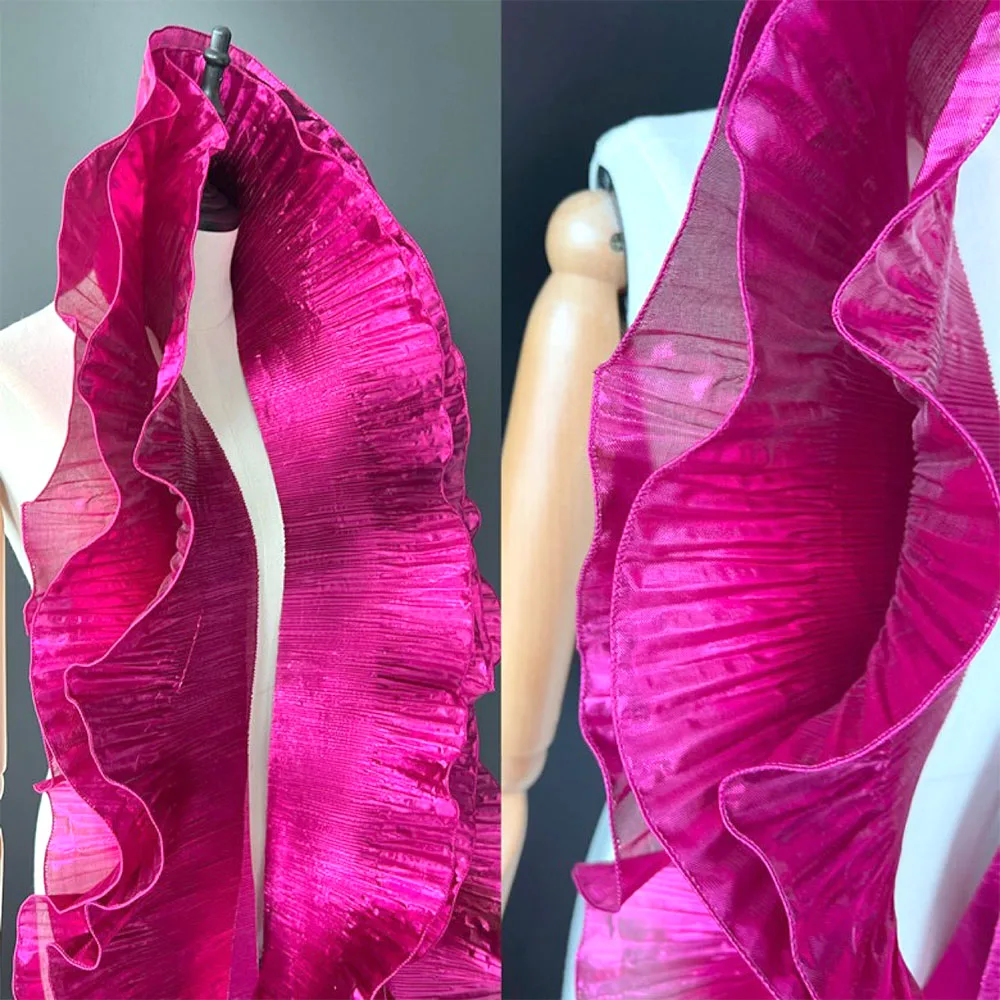 1/2 ヤードメタリック光沢のあるフリルプリーツトリムクリンクルオーガンザレース生地 DIY 衣装スカートボーダークラフトパッチワーク用品 - TopDealBox