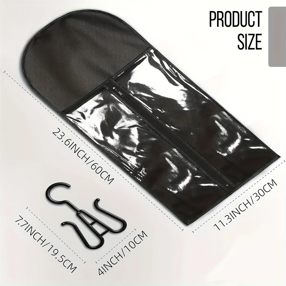 1/3 個のプレミアムウィッグ収納バッグ、丈夫な金属ハンガー付き - 複数のウィッグやヘアエクステンション用の黒色透明デザイン - TopDealBox