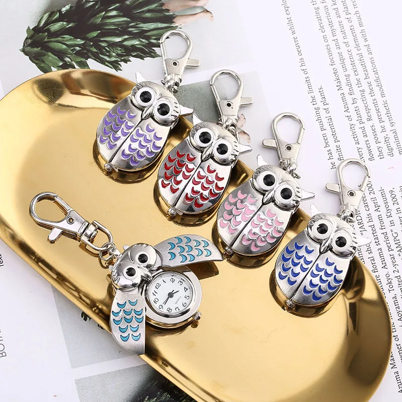 ファッションキーホルダーフクロウの形の懐中時計ユニセックスヴィンテージ合金キーリング時計懐中時計キーチェーンバッグ車の誕生日プレゼント 1/3/5 個 - TopDealBox